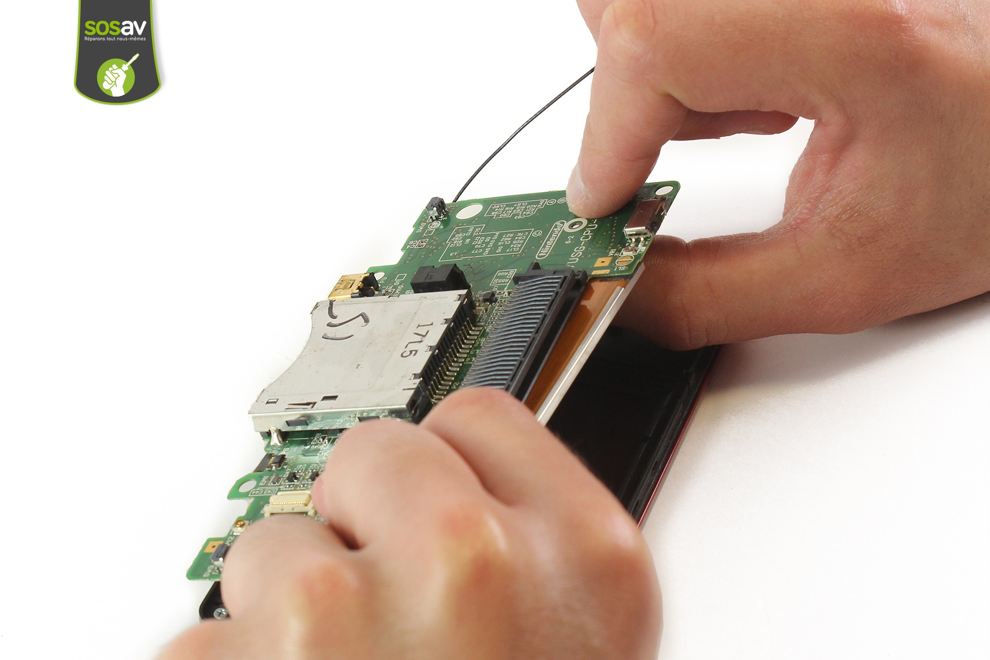 A l'aide de la spatule en nylon, sortez l'antenne WiFi de son logement.