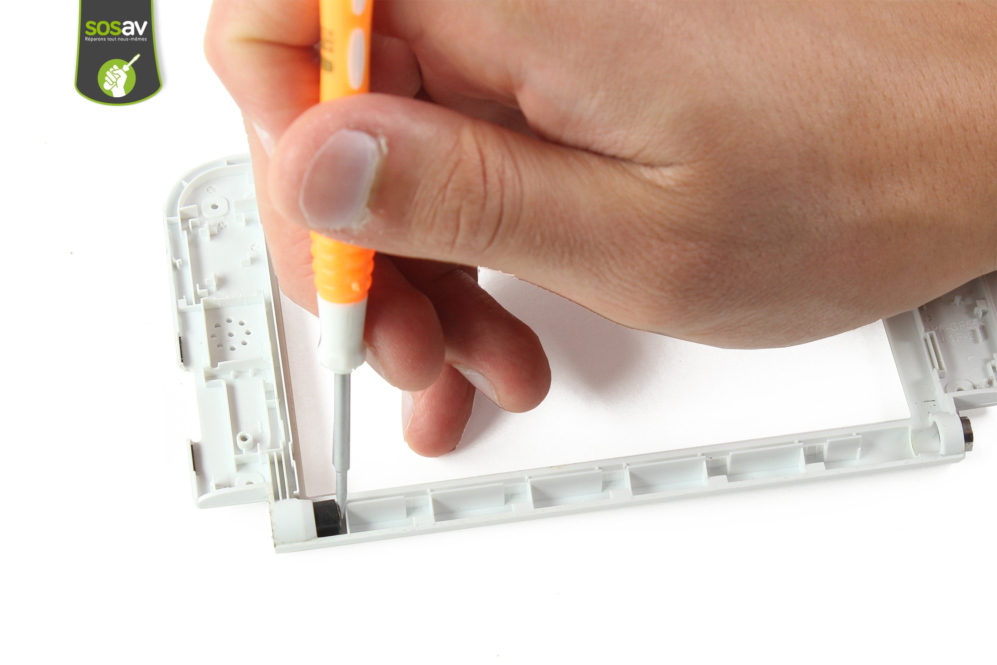 Utilisez le tournevis plat afin de sortir la charnière de son logement.