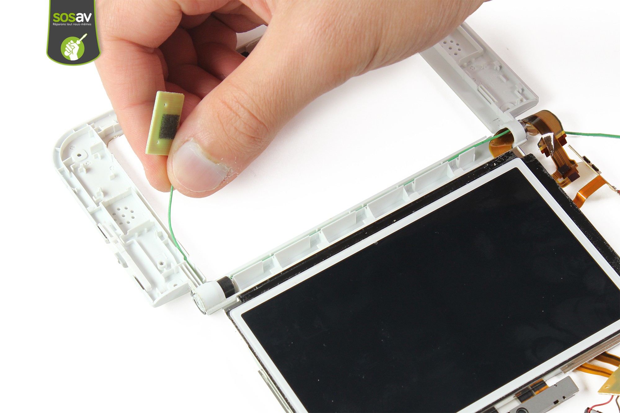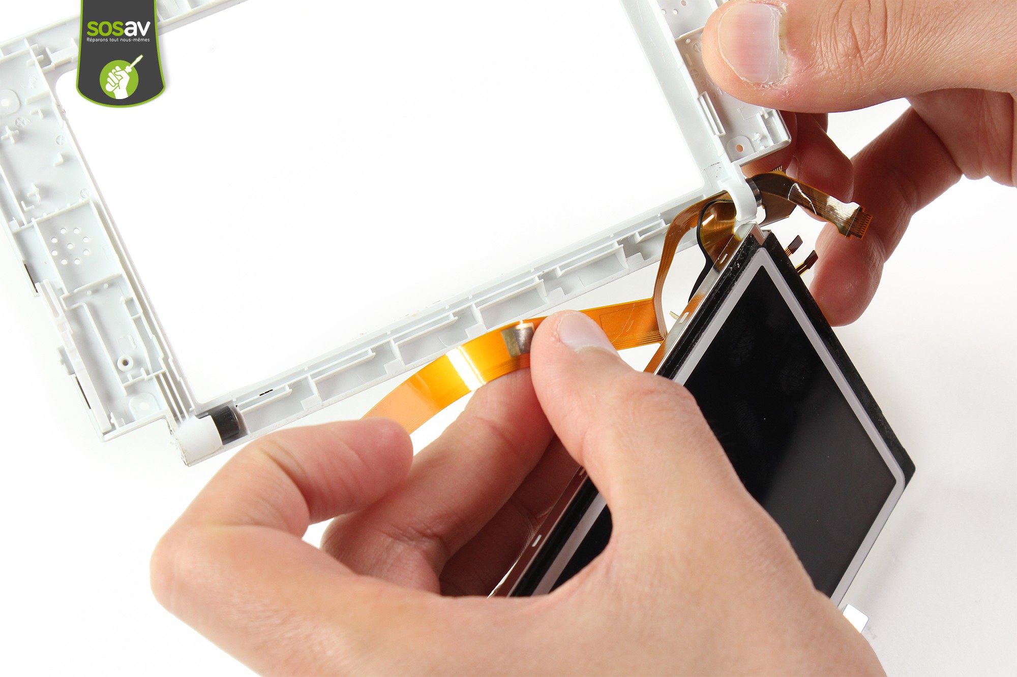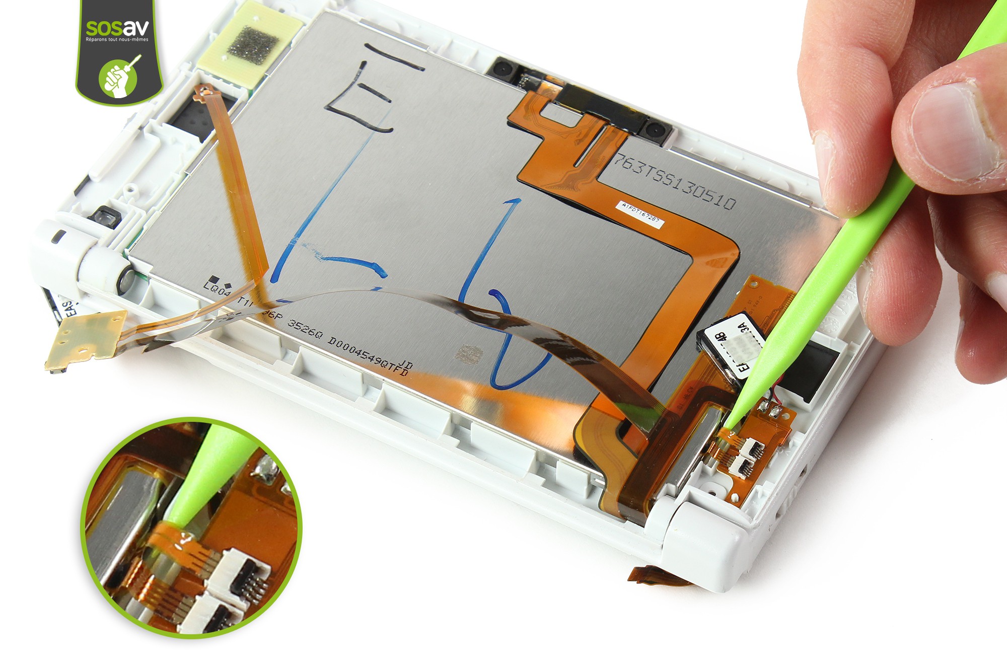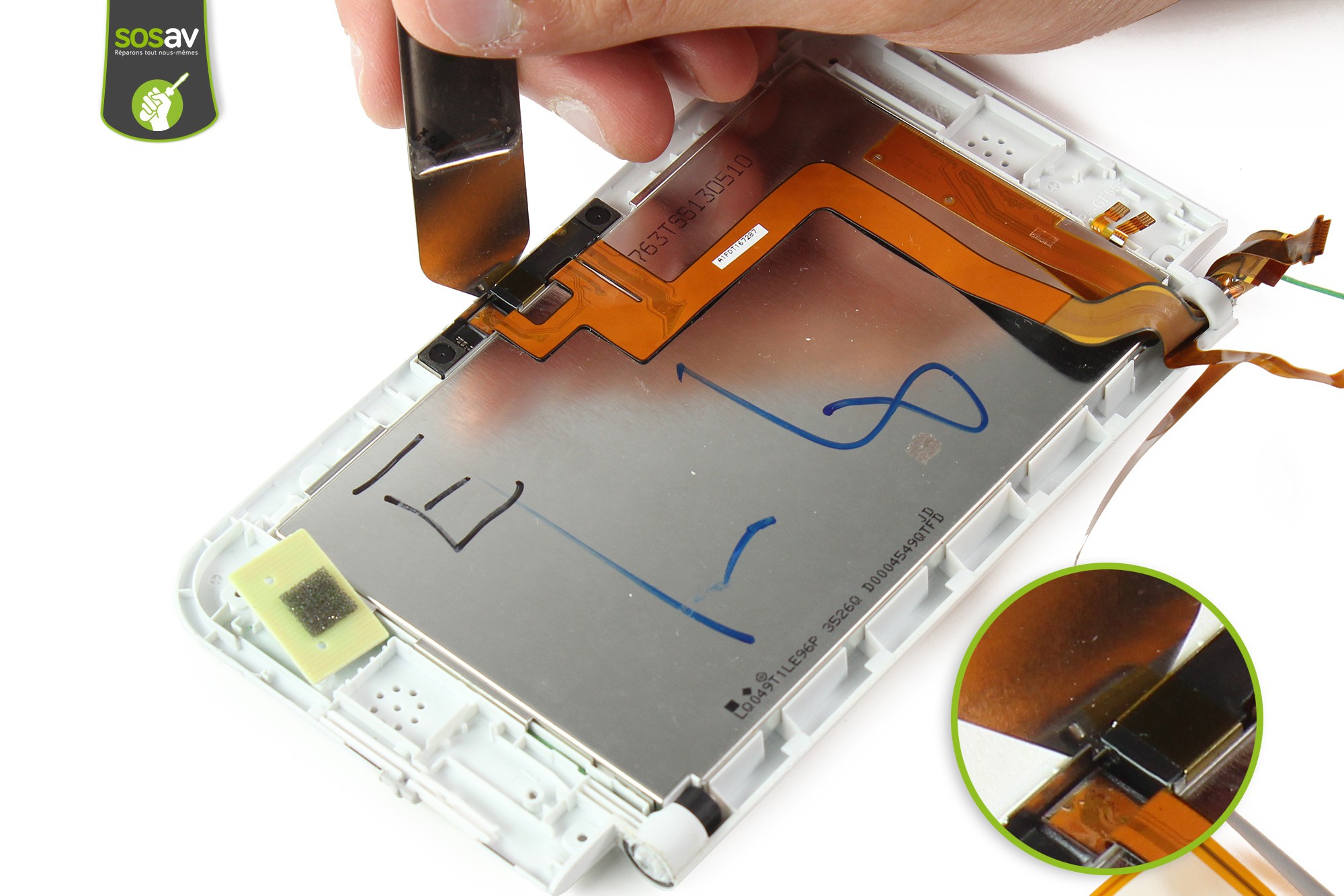 Sortez, avec la pointe de la spatule, la première nappe de l'écran.Procédez de même pour la seconde.