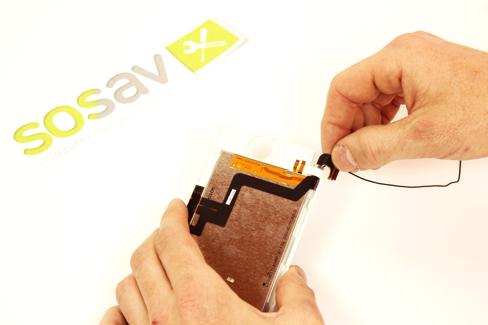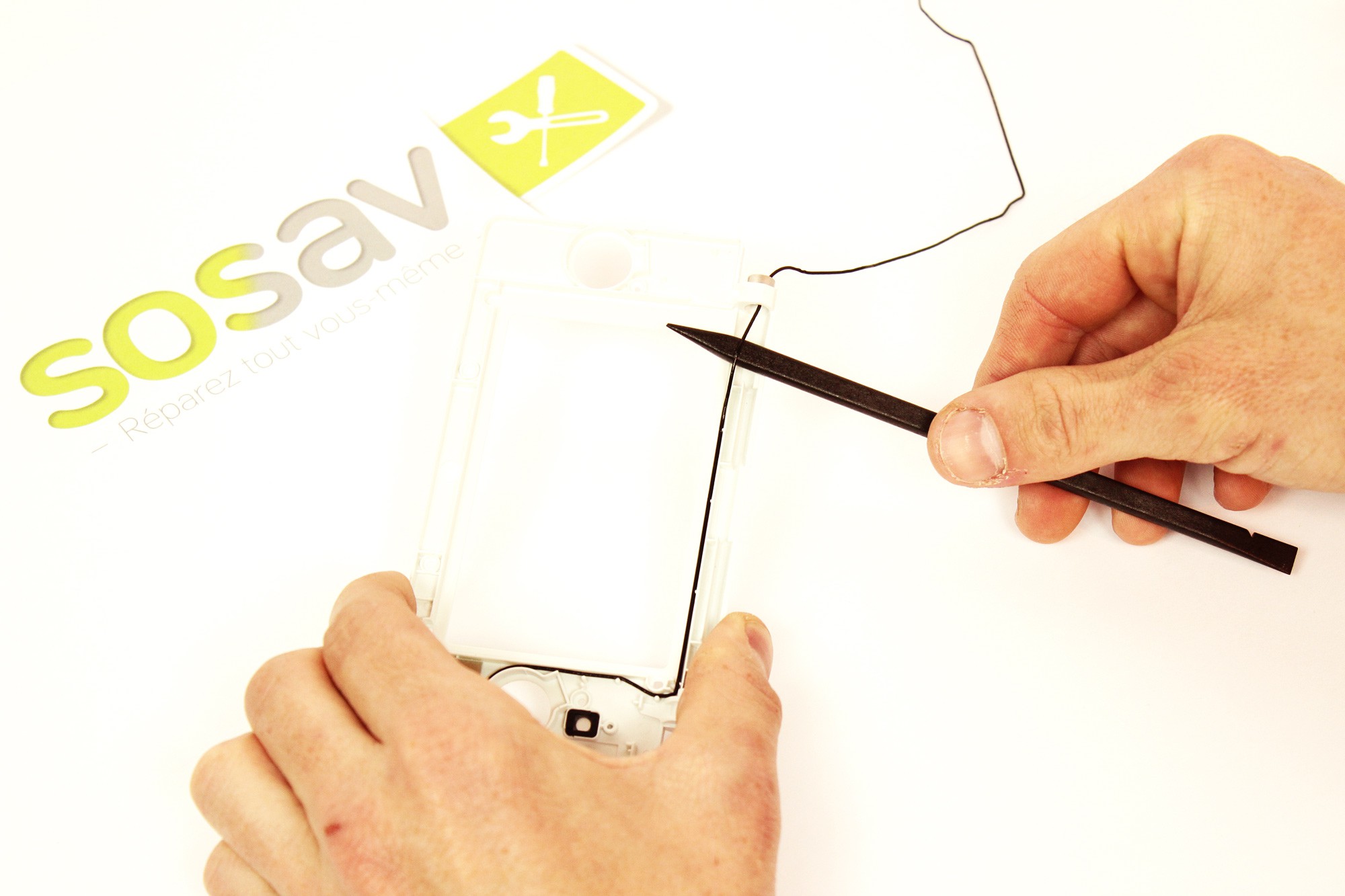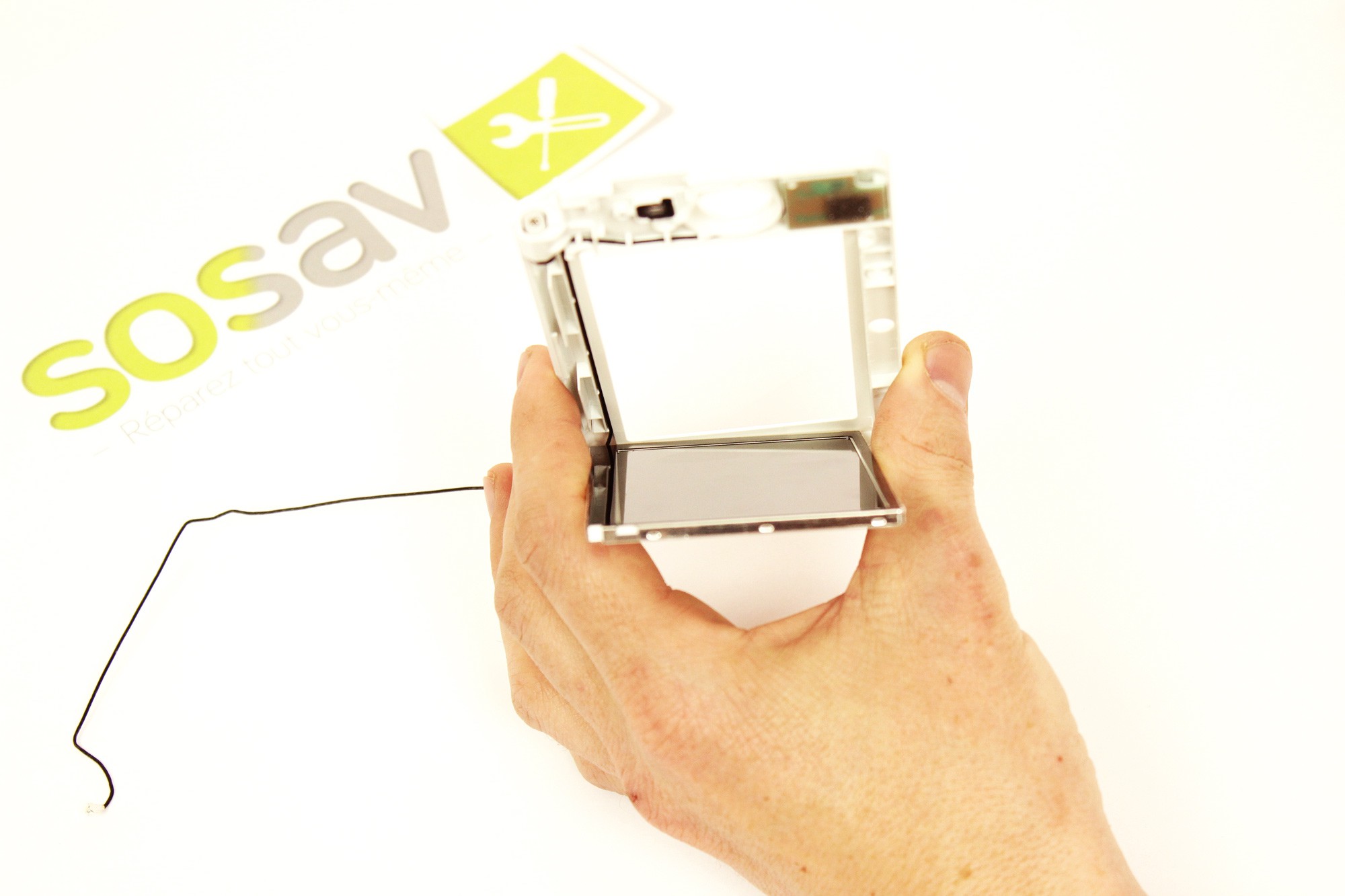 Enlevez désormais l'antenne WiFi comme indiqué sur la photo.Si vous êtes simplement entrain de changer la vitre du LCD et non le LCD complet, cette étape n'est pas obligatoire.