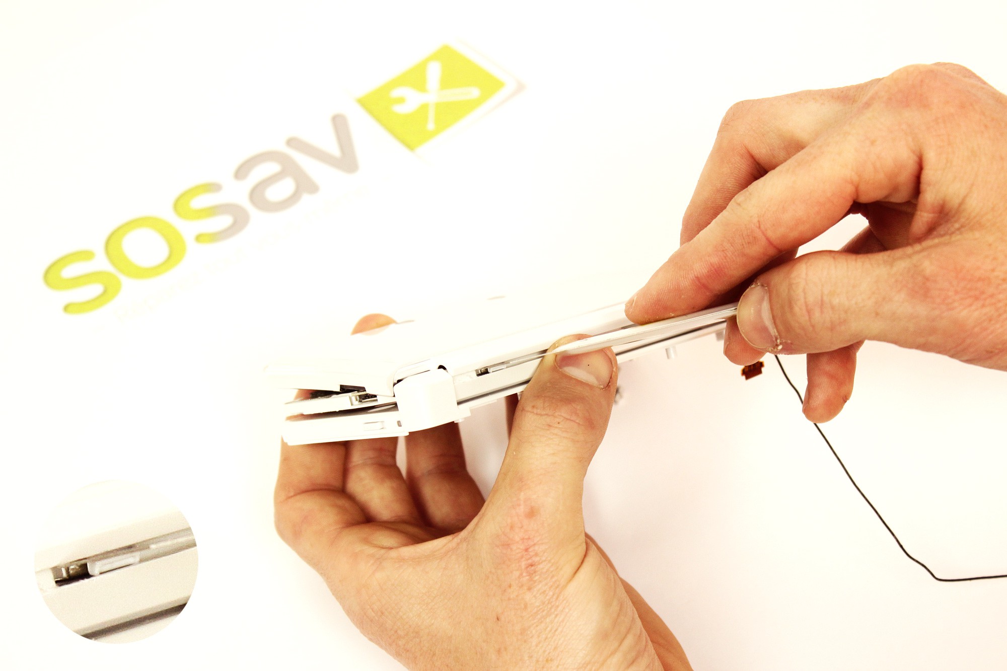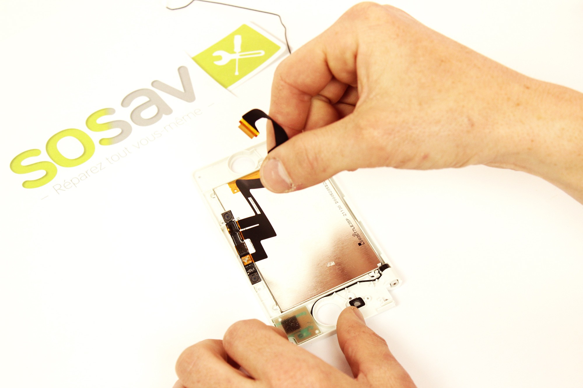 A l'aide d'une pince, retirez les 2 pièces de caoutchouc situées de chaque côté du contour du LCD.