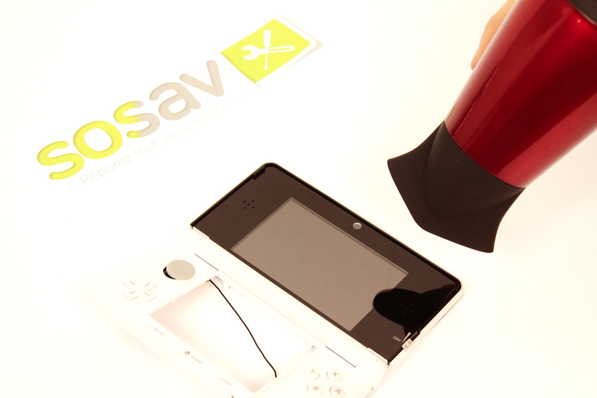 Glissez délicatement une spatule en nylon entre la vitre du LCD et la coque le 3DS puis remonter doucement vers le haut de la vitre.Pour décoller complètement la vitre, utilisez la spatule pour faire le tour de celle-ci.RAPPEL : Si vous avez besoin de trop forcer, n'hésitez pas à re-chauffer votre vitre à l'endroit souhaité.