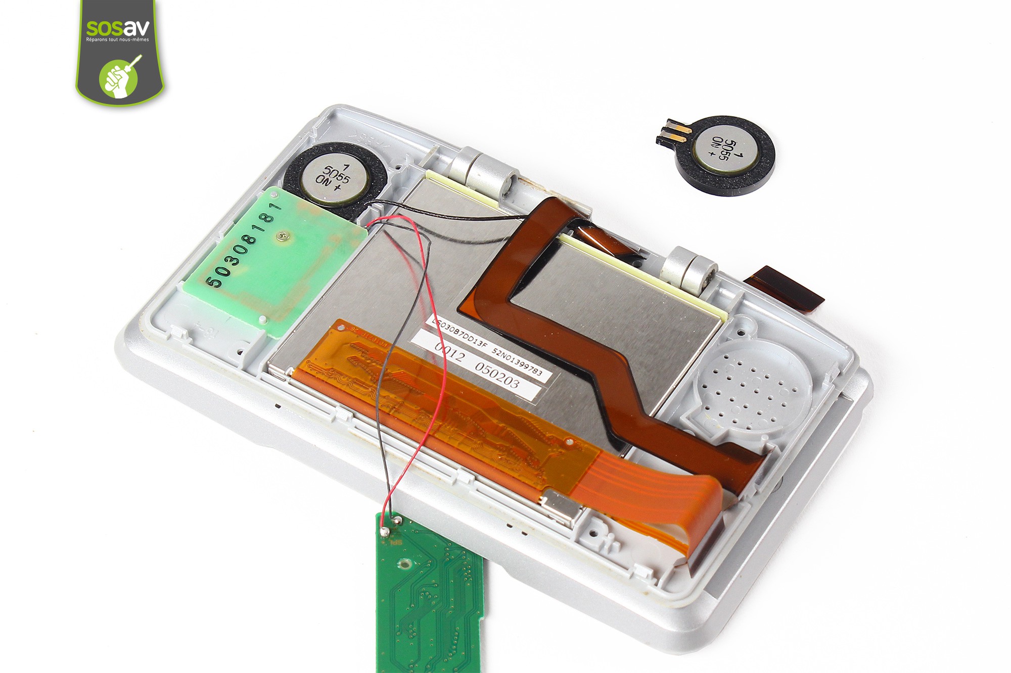 Le haut-parleur droit de votre Nintendo DS est désormais démonté.Procédez à son remplacement par une pièce neuve si cela est nécessaire.