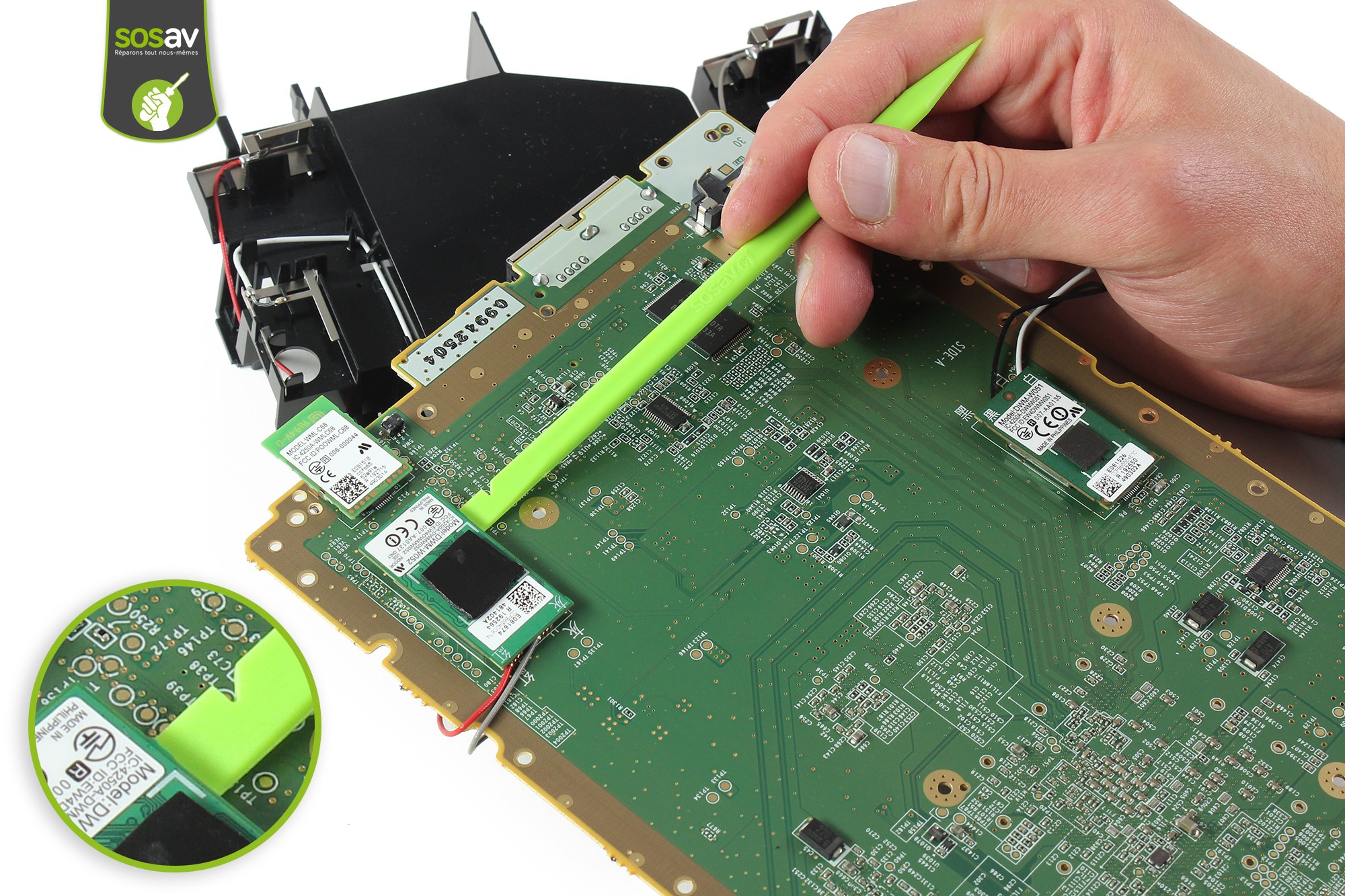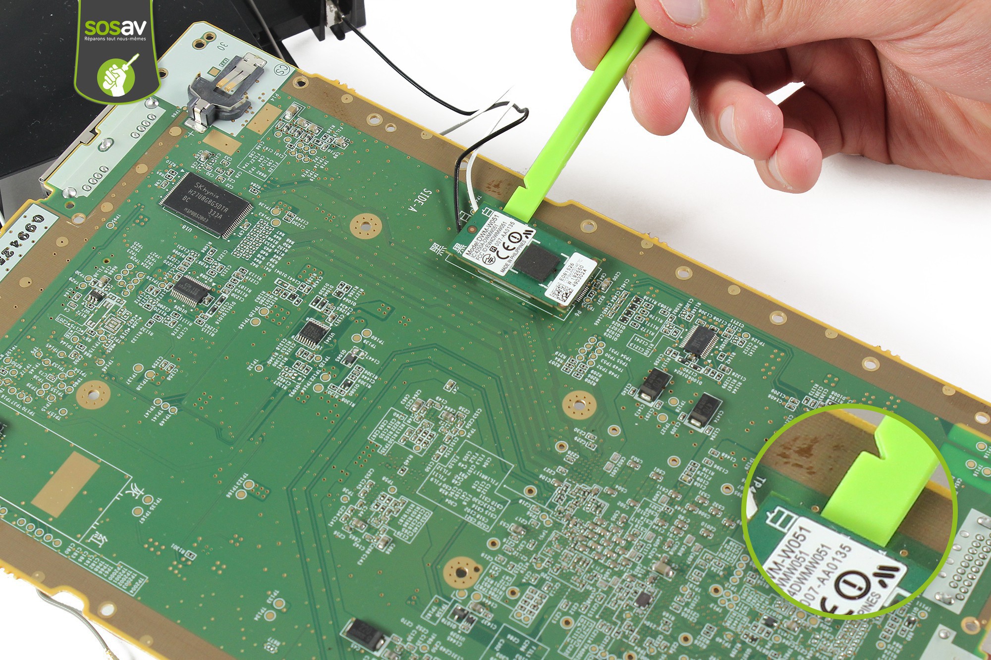 Déconnectez la carte WiFi gauche à l'aide de la spatule en nylon.