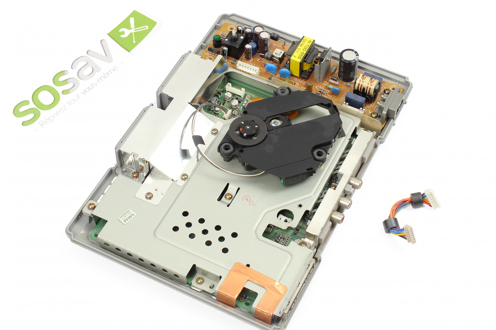 Saisissez désormais le câble d'alimentation. Saisissez-le au plus proche de son connecteur situé sur la carte d'alimentation.