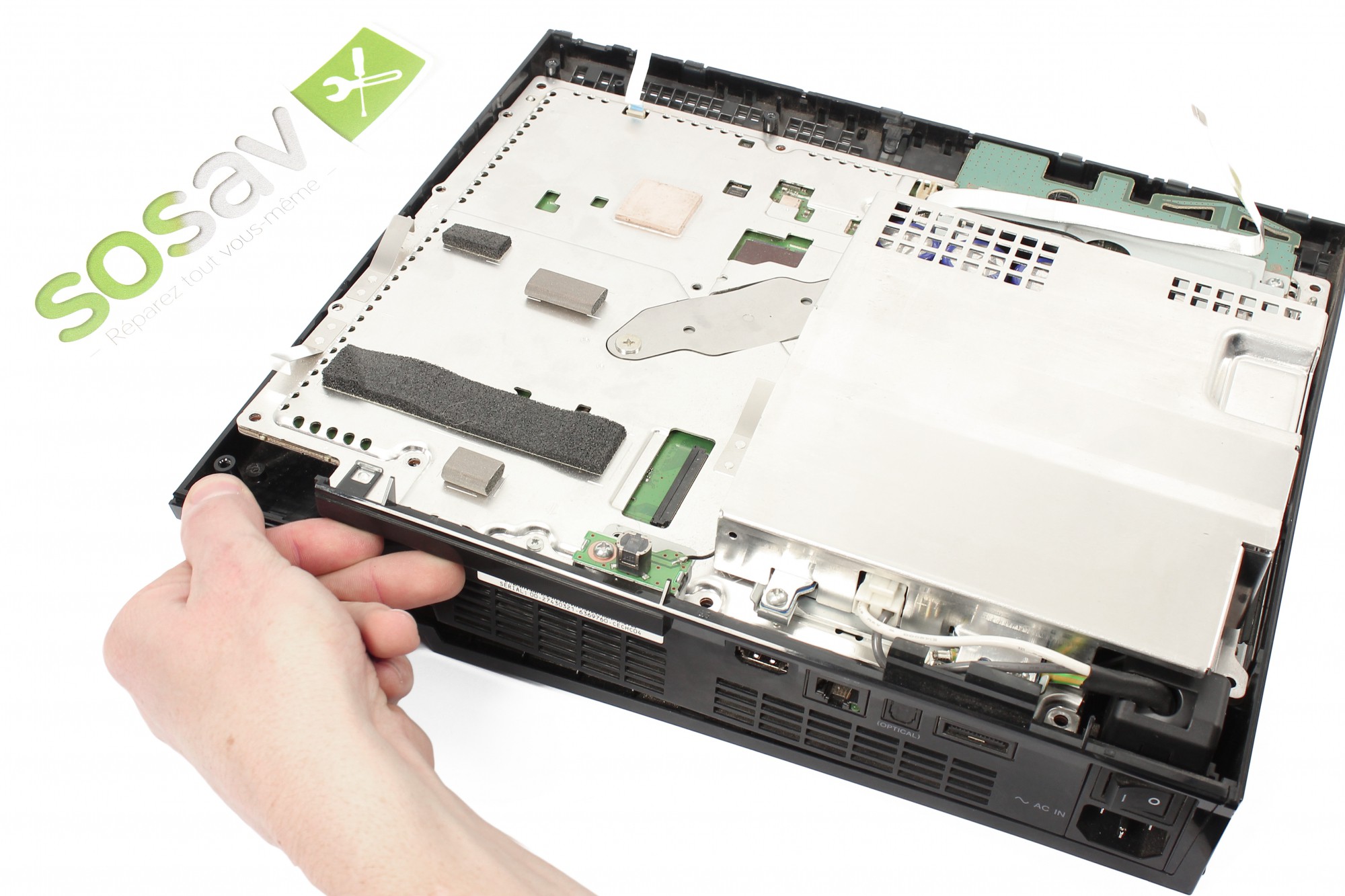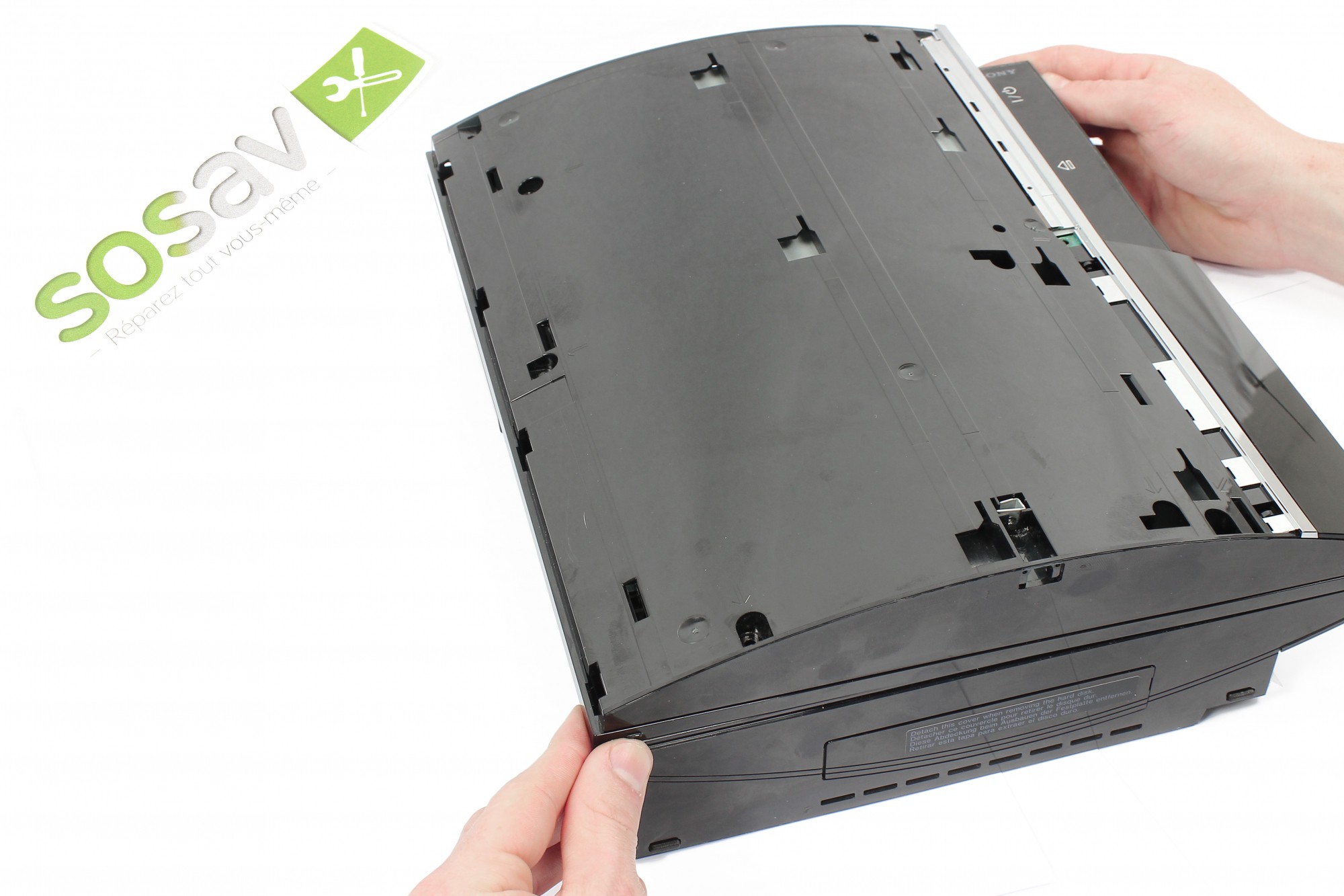 Soulevez désormais le capot supérieur, afin de l'extraire de la PlayStation 3.
