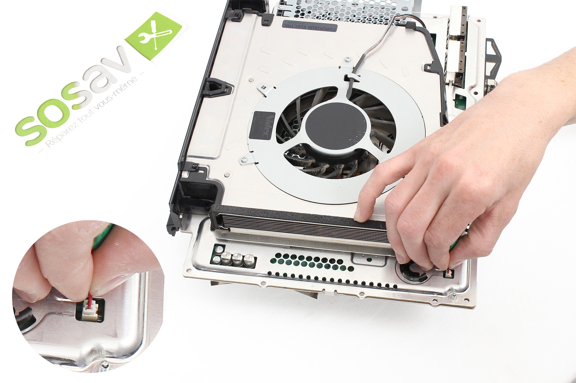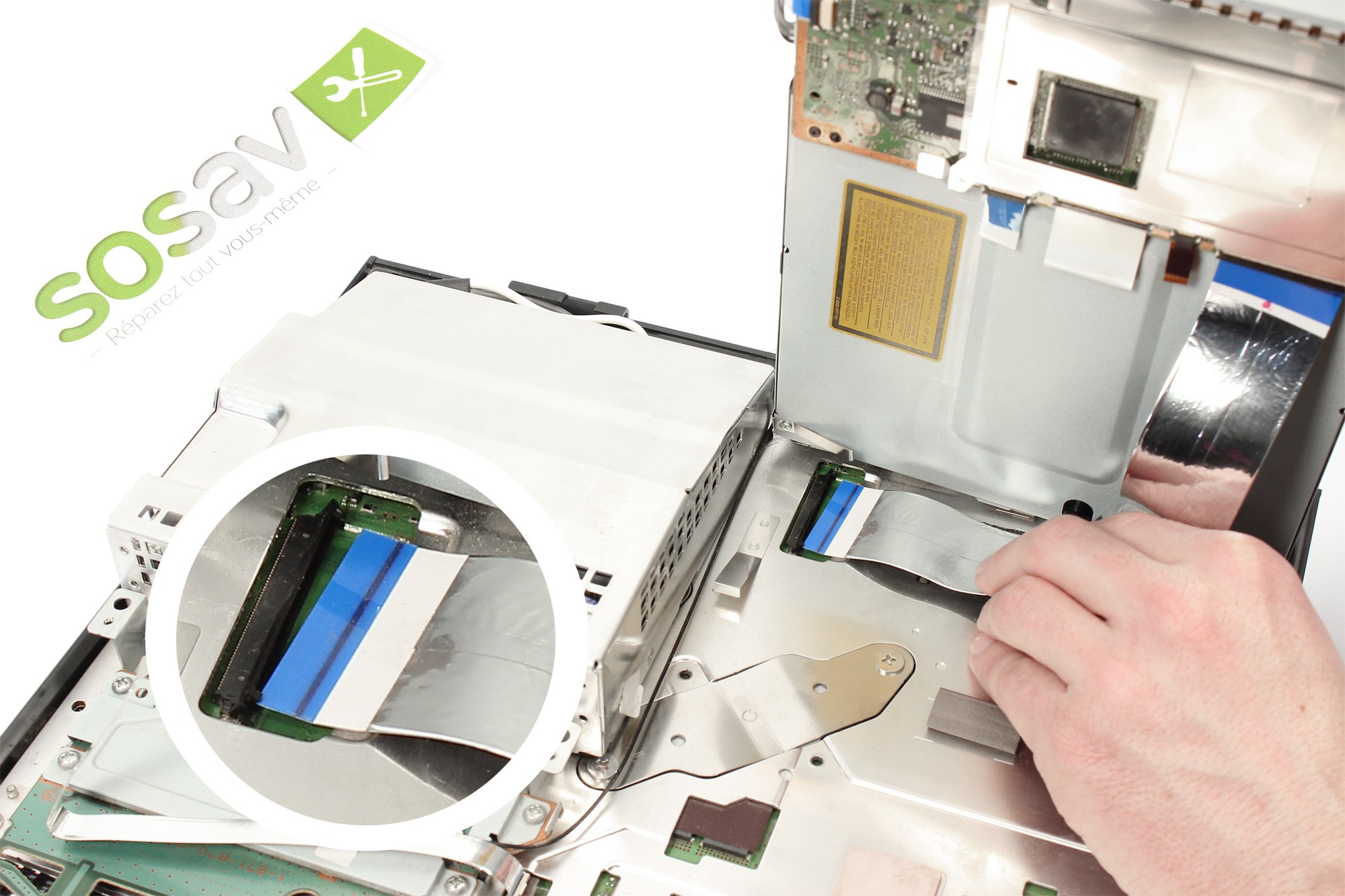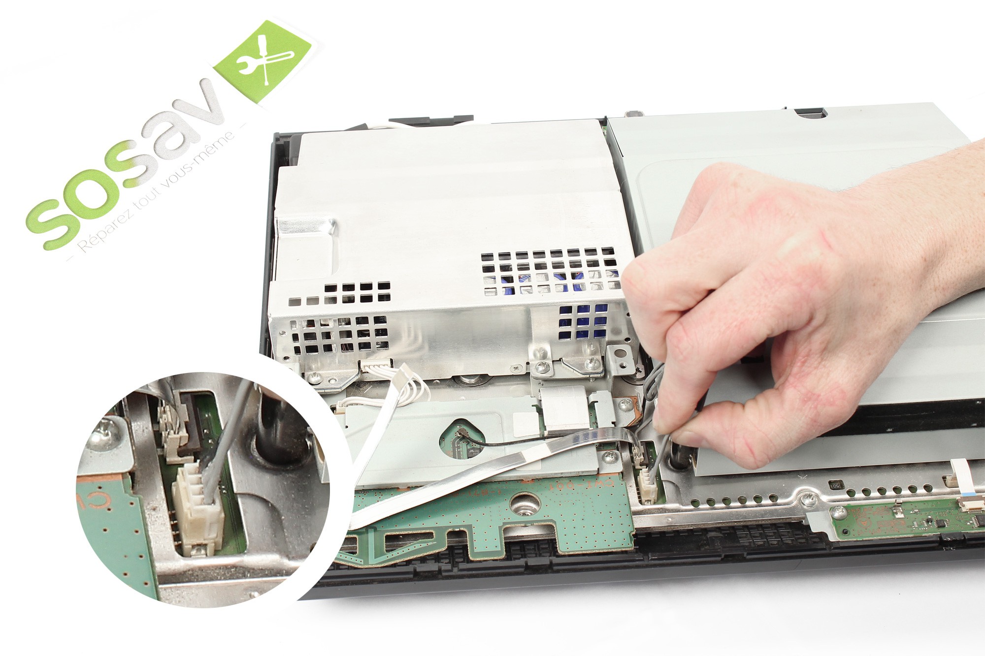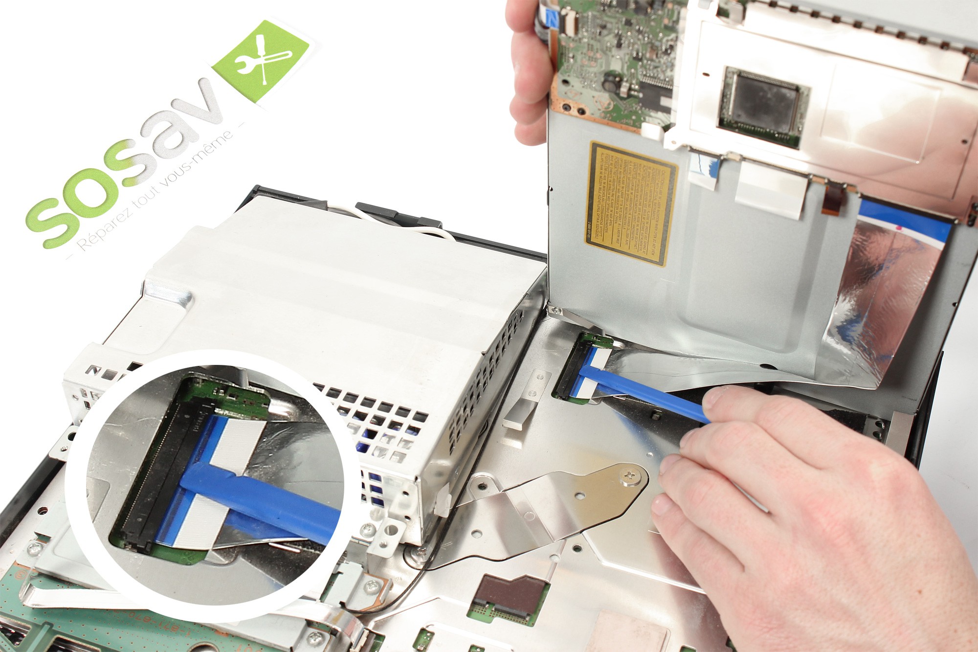 N'essayez pas à ce moment d'ôter totalement le lecteur blu-Ray de votre PS3. Celui-ci est toujours attaché à la PlayStation 3 grâce à une nappe de connexion.