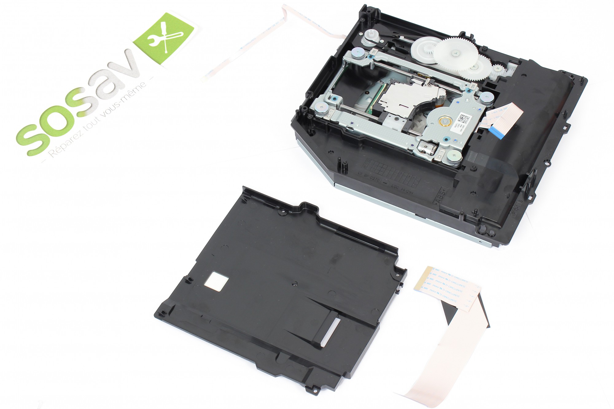 La nappe de liaison du lecteur Blu-ray de votre PlayStation est désormais démontée.