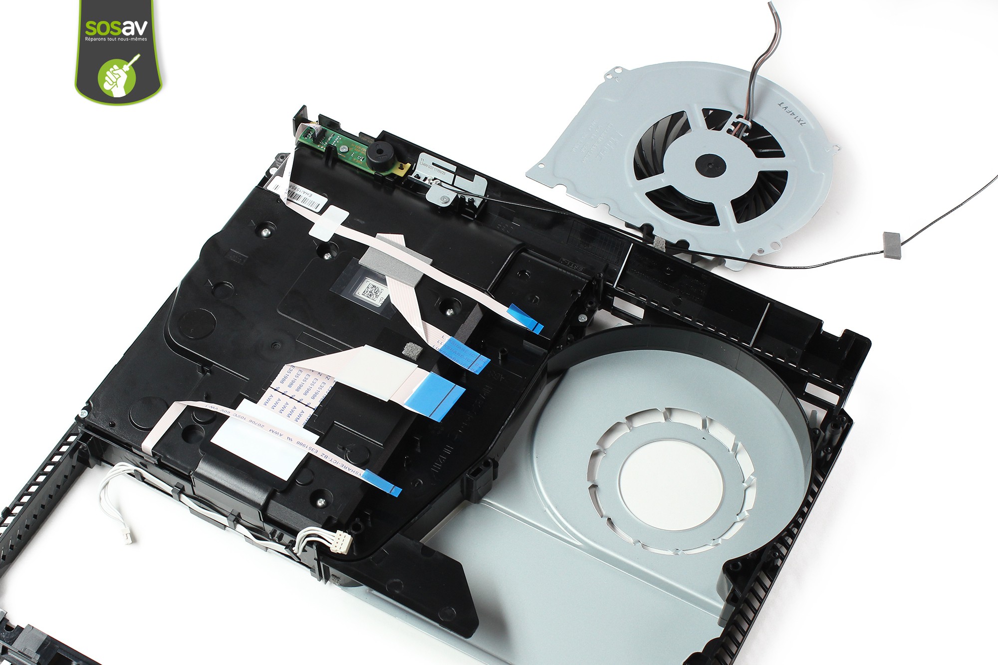 Le ventilateur Playstation 4 Slim est désormais démonté.En cas de problème de surchauffe, remplacez-le par un ventilateur PS4 Slim neuf.