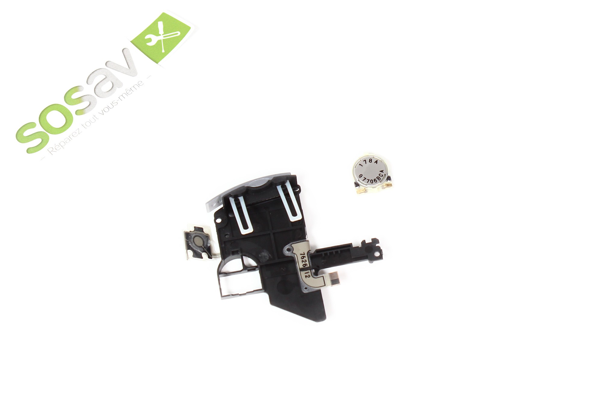 Prenez à nouveau la spatule en nylon pour décoller délicatement le bouton de la gâchette gauche.