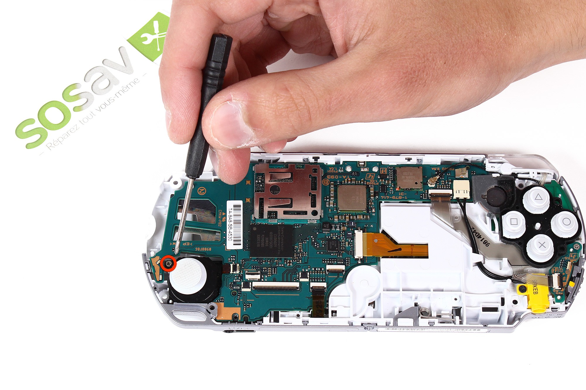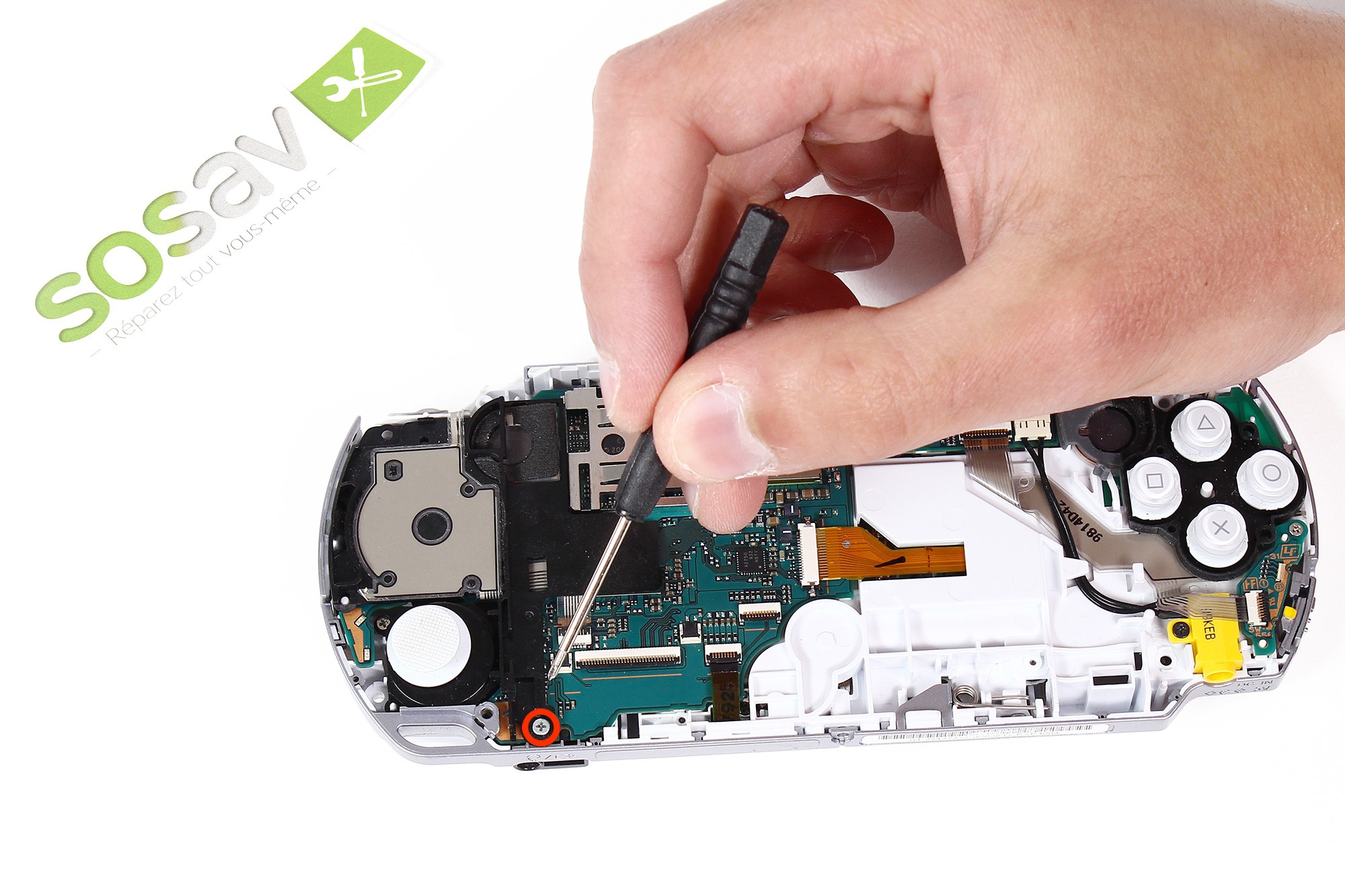 Cette vis retient la carte-mère au châssis de la PSP 3000.