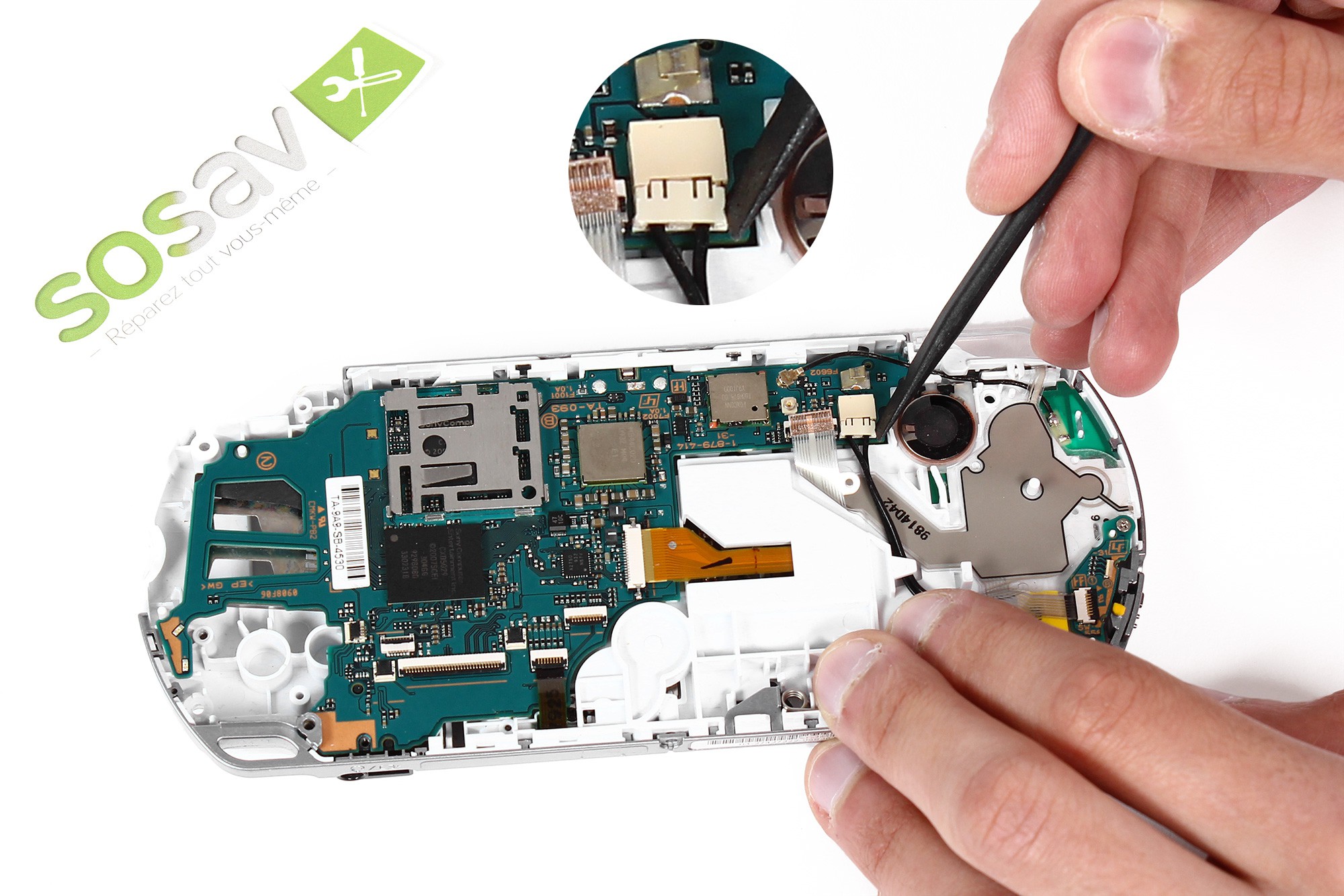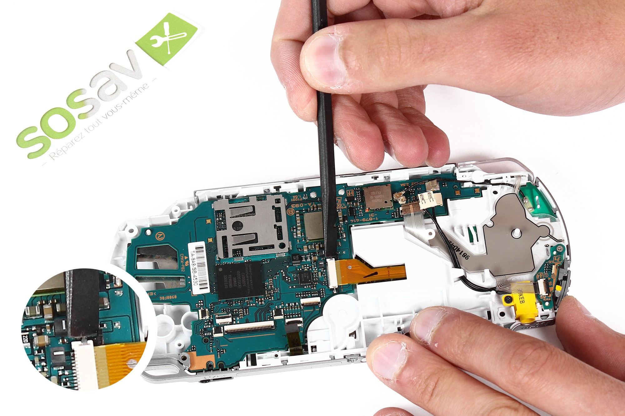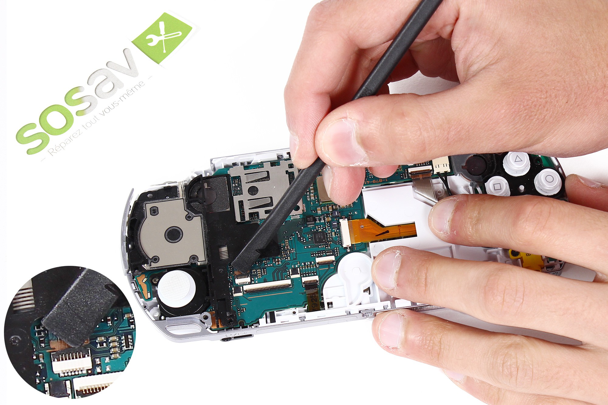 Reprenez la spatule en nylon pour déverrouiller le connecteur FPC du moteur du lecteur UMD.