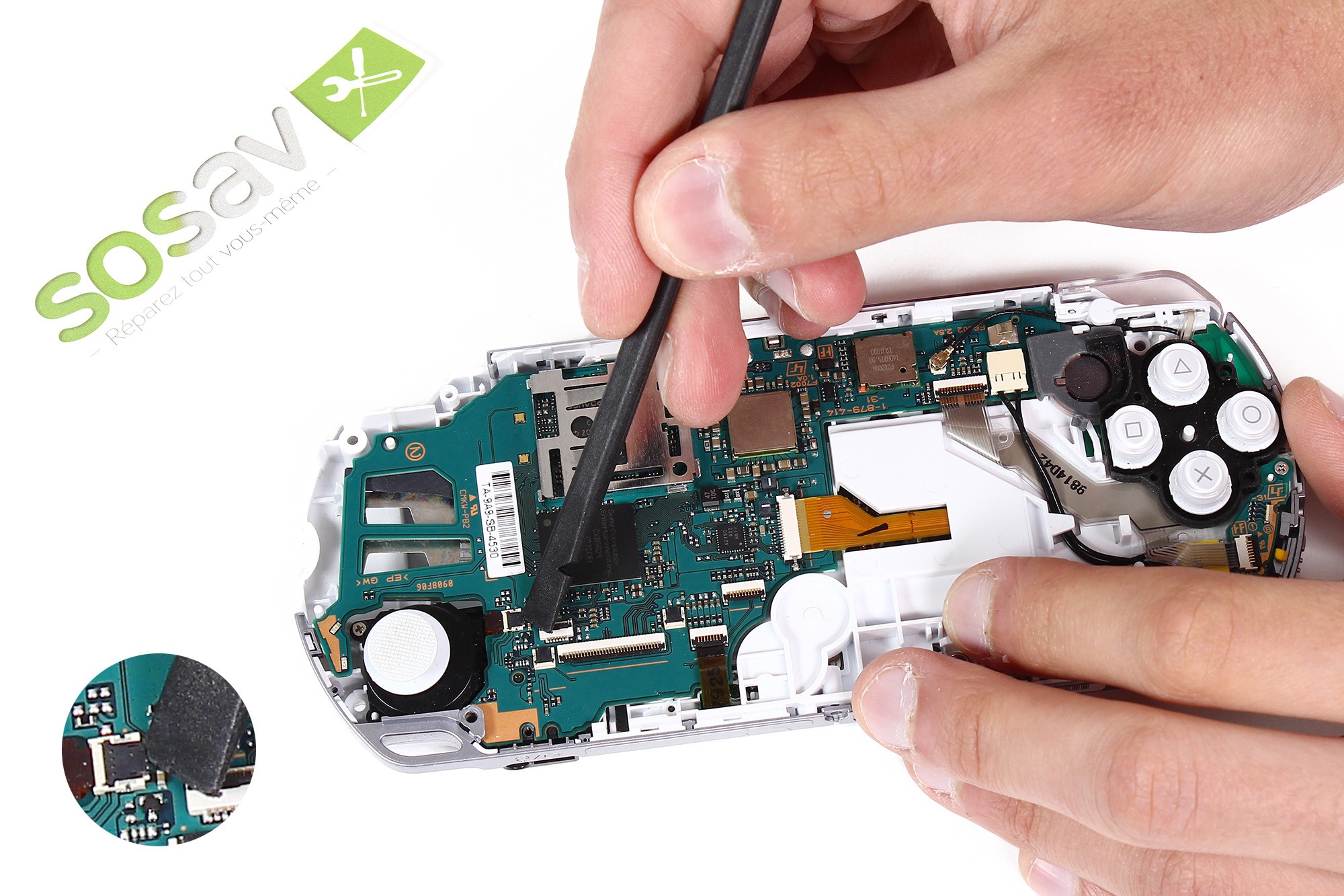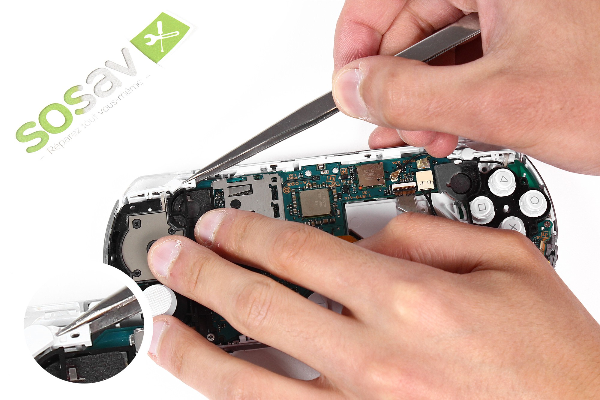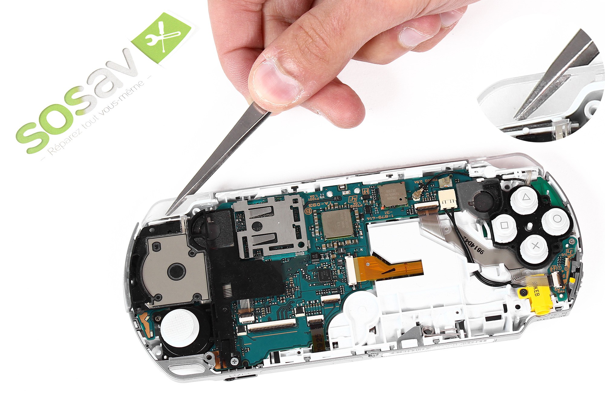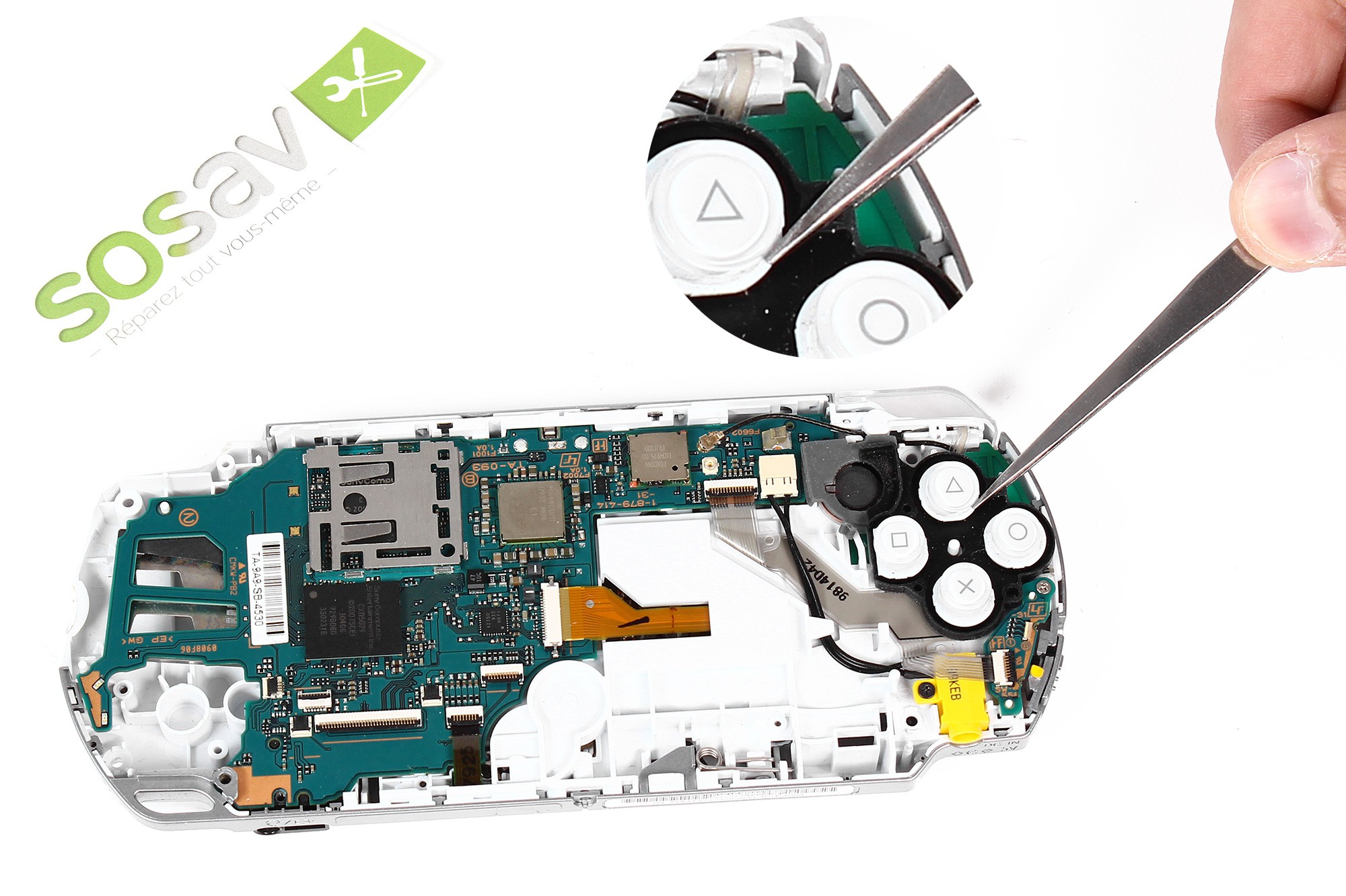A l'aide d'une pince, saisissez les boutons d'action de la PSP 3000 puis procédez à leur retrait.