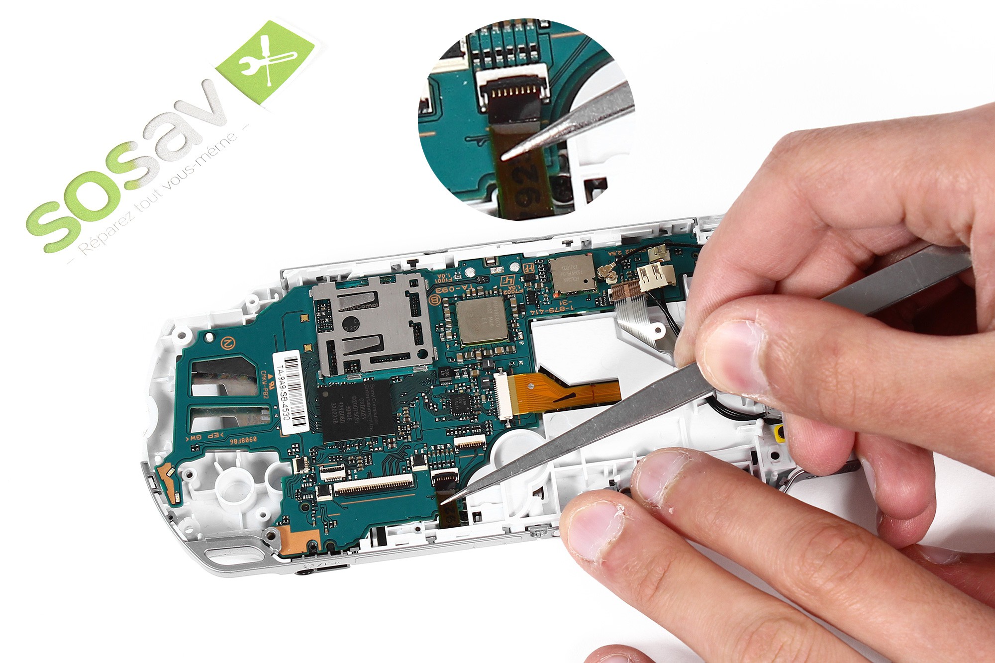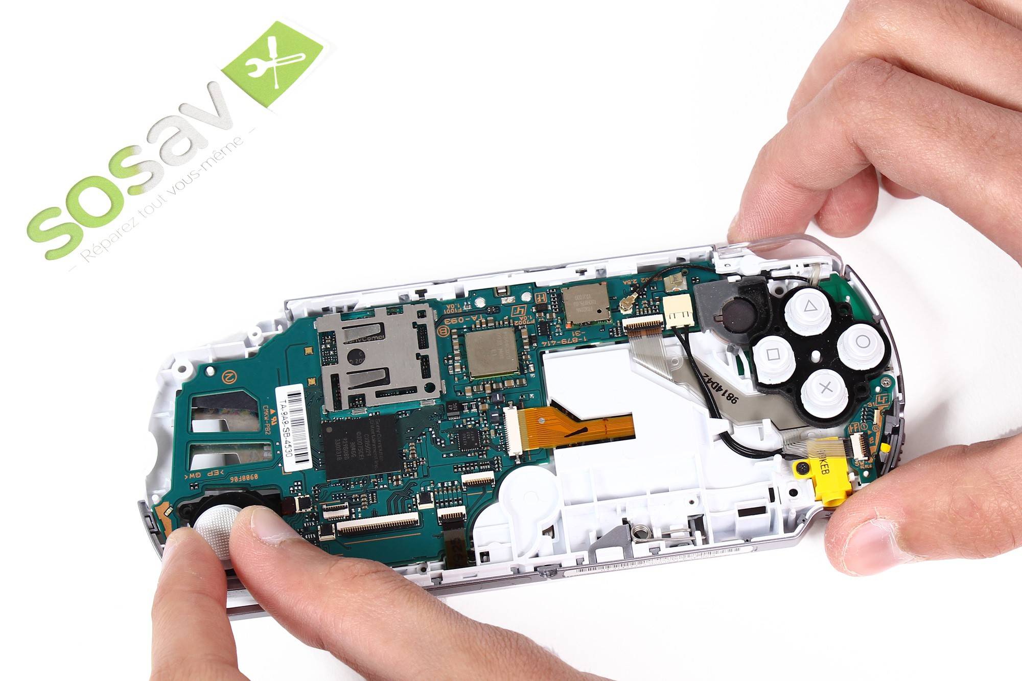 Ne retirez pas encore le JoyStick ! Ce dernier est encore retenu par sa nappe à la carte mère de la PSP 3000 !