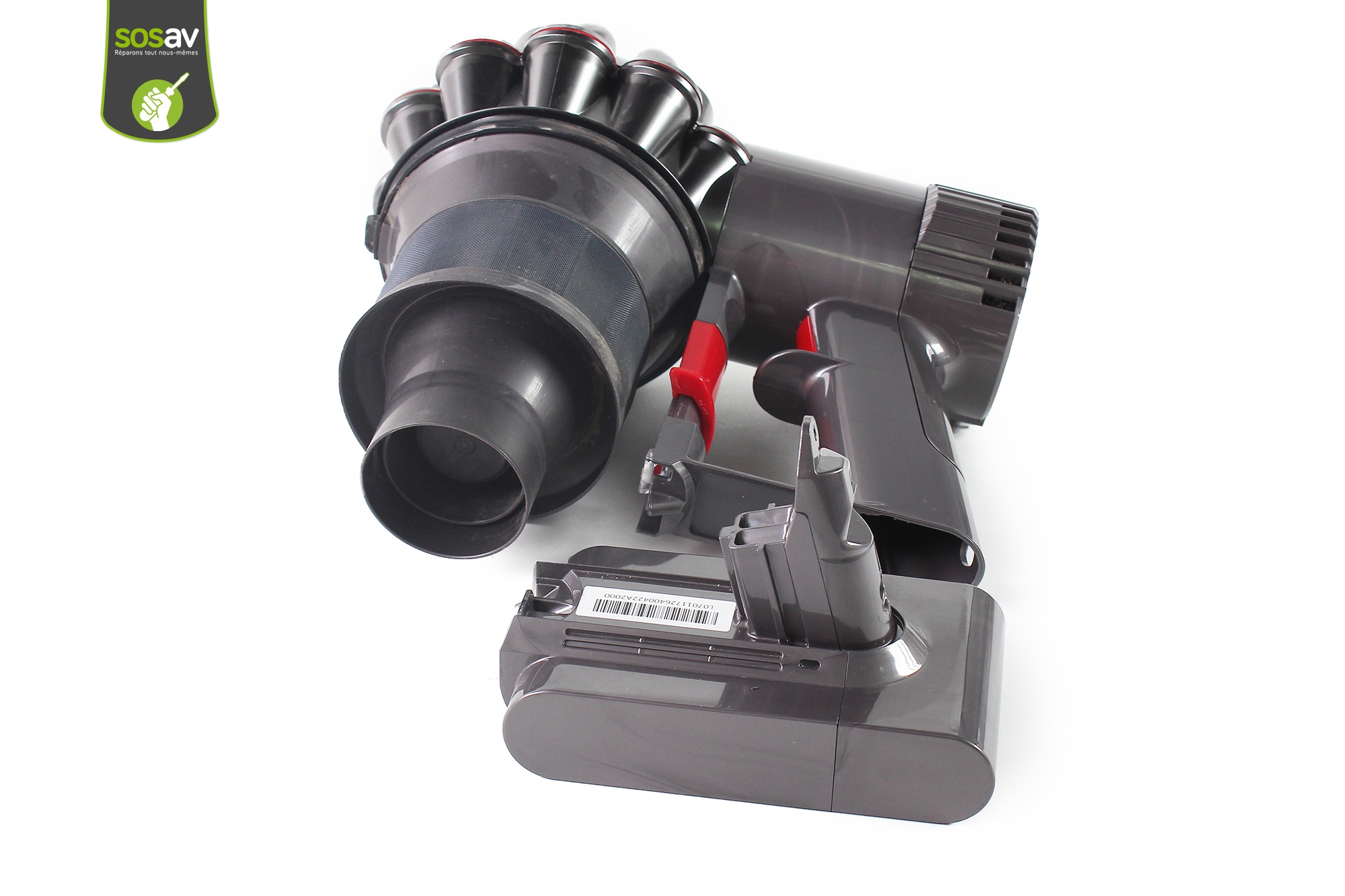 Votre batterie Dyson V6 ne prend plus la charge et vous ne pouvez donc plus utiliser votre aspirateur comme bon vous semble ? Ou alors l'autonomie est si faible que vous devez faire tout le ménage en moins de 30 secondes... Le voyant s'allume mais la batterie reste à plat quand vous la branchez sur secteur ? Bref, vous souhaitez remplacer la batterie de votre aspirateur Dyson V6 mais vous comptez sur SOSav pour vous dévoiler les étapes à suivre. Et bien, nous vous expliquons tout dans ce guide de réparation illustré et commenté ! Vous pourrez changer votre batterie Dyson V6 usagée en quelques minutes seulement !