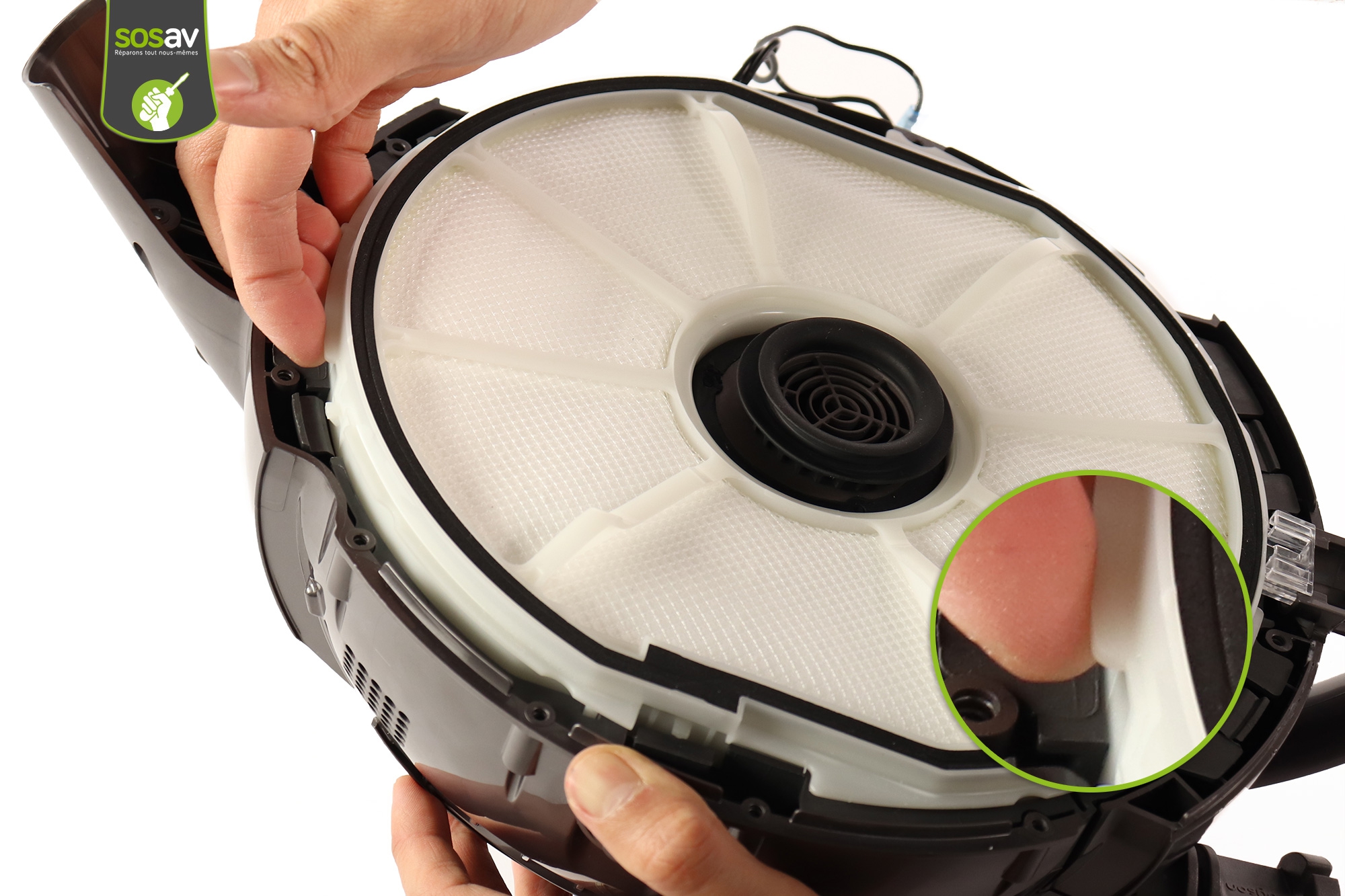 Votre câble ne s'enroule plus correctement et vous vous prenez les pieds dedans lorsque vous rangez votre aspirateur ? Le câble est cassé ou coupé ? L'enrouleur est HS ? Bref, vous devez changer votre enrouleur Dyson Cinetic Big Ball 2 et ne savez pas comment faire ? Vous êtes au bon endroit puisque les experts SOSav sont là pour vous aider. Il vous suffit de suivre les indications de ce guide de réparation illustré et commenté afin de savoir comment procéder pour redonner une seconde jeunesse à votre aspirateur, sans vous ruiner !