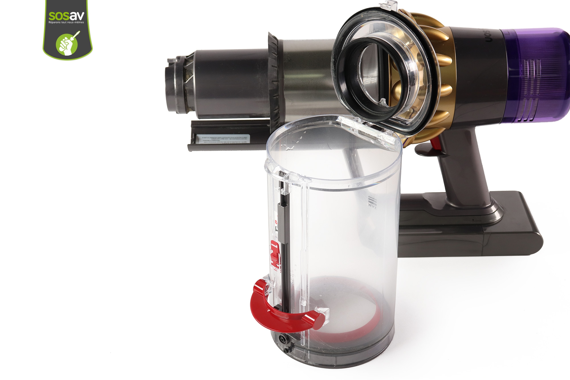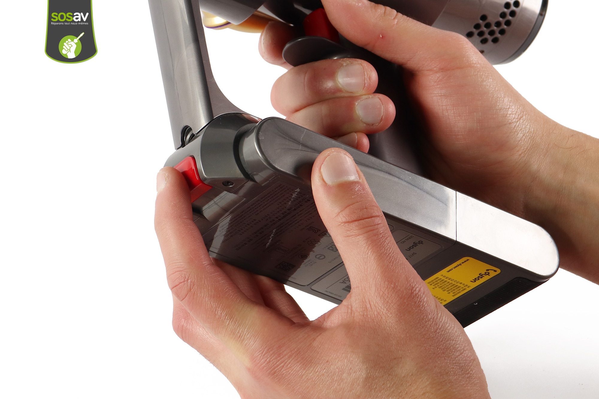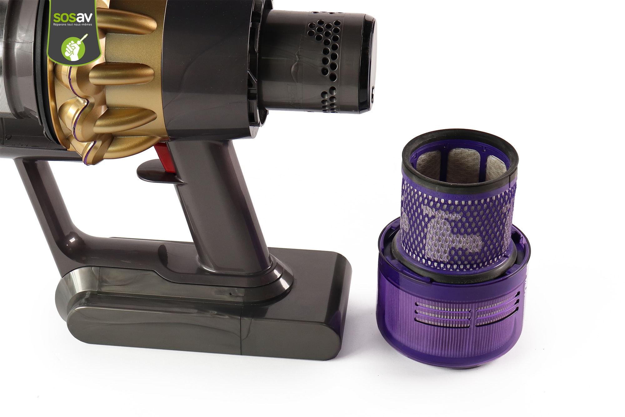 Votre aspirateur Dyson V11 ne s'allume plus correctement ? Il est devenu très bruyant car le moteur chauffe ? Le cyclone est HS et n'aspire plus rien ? Au lieu d'envisager le rachat d'un nouvel appareil, pensez à SOSav pour vous aider dans votre réparation Dyson V11 ! Nos techniciens vous accompagnent dans cette épreuve avec ce guide de réparation illustré et commenté. Nous vous expliquons tous les gestes à réaliser afin de remplacer le moteur Dyson V11 ainsi que le cyclone, selon la panne rencontrée. En quelques minutes seulement, vous pourrez de nouveau lutter contre la poussière en ayant fait des économies !
