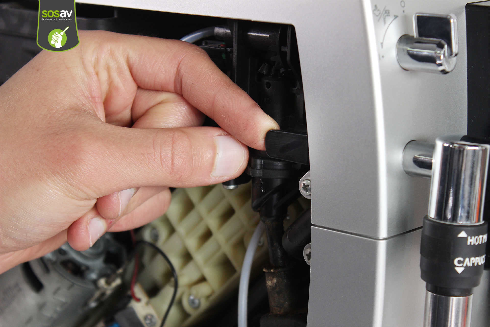 Votre machine à café Delonghi ECAM 23.420.SB ne parvient plus à délivrer d'eau chaude ? La buse est encrassée et plus rien ne sort ? La buse est cassée et vous ne pouvez plus l'utiliser ? Pas de panique car SOSav est là pour vous aider ! Nos techniciens vous dévoilent toutes les manipulations à réaliser pour changer la buse d'eau chaude de votre machine à café Delonghi à travers ce guide de réparation. Toutes les étapes sont illustrées et commentées afin de vous accompagner tout au long de votre réparation machine à café. Vous verrez ainsi que c'est possible sans connaissance technique particulière et que vous ferez une importante économie par rapport au rachat d'une nouvelle cafetière.