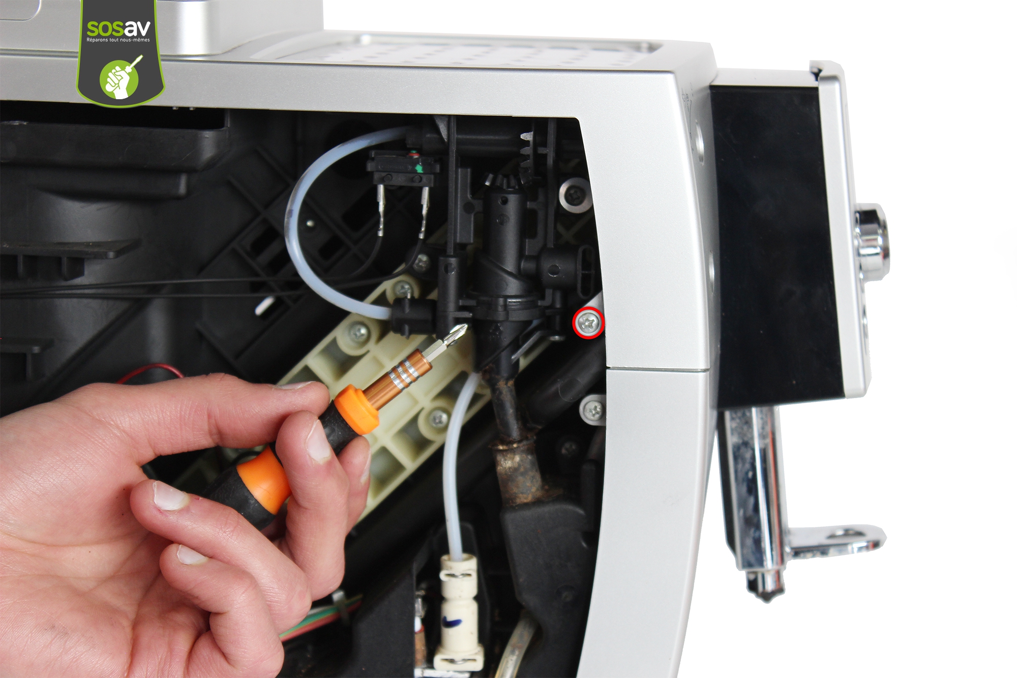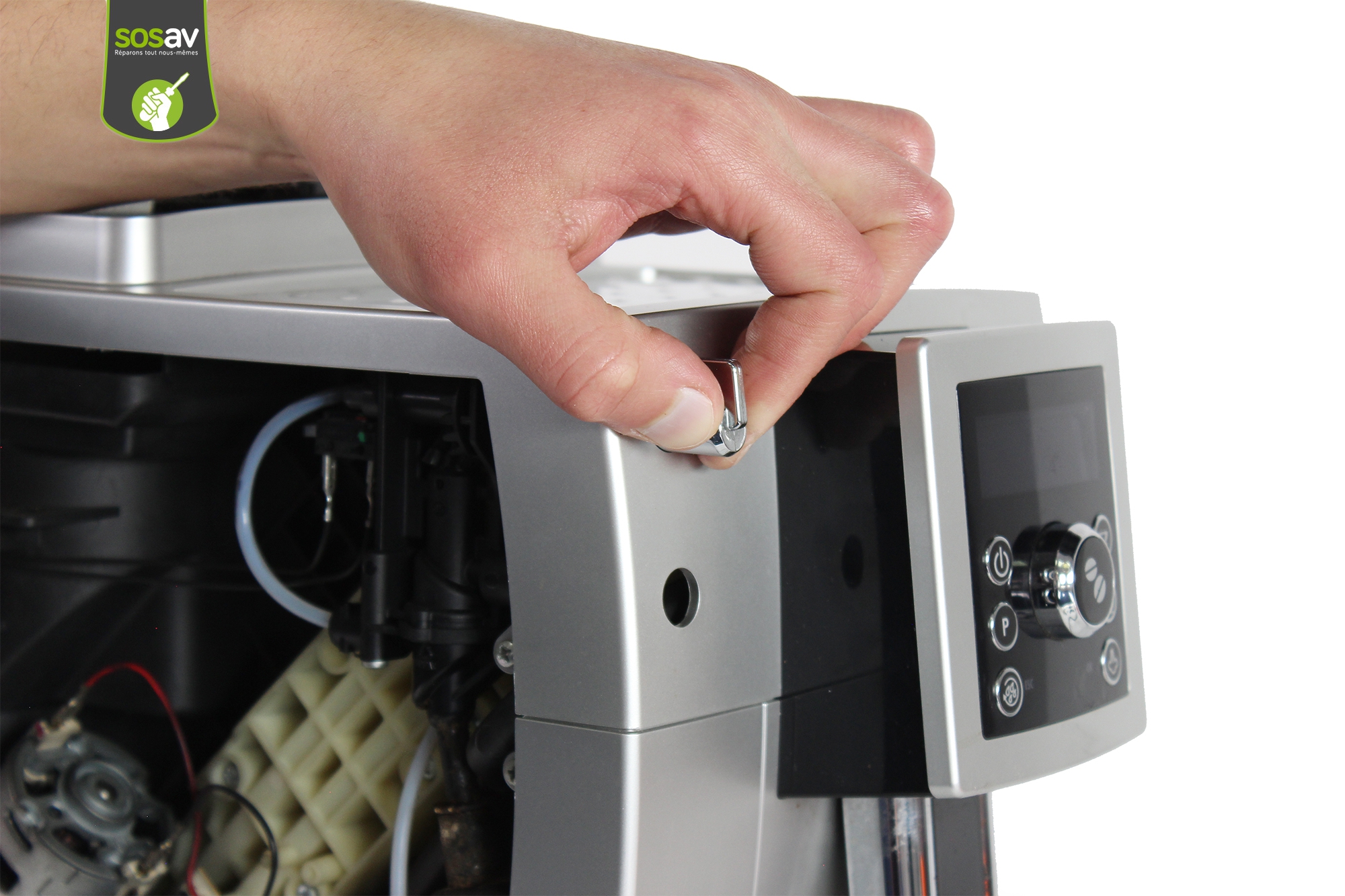 Vous ne pouvez plus sélectionner votre boisson car le panneau de contrôle de votre machine à café Delonghi ECAM 23.420.SB est HS ? L'écran n'affiche plus rien ? Les boutons ne répondent plus ? Bref, le panneau de contrôle ne fonctionne plus et vous souhaitez le remplacer afin de pouvoir continuer à utiliser votre machine espresso Delonghi ? Vous avez frappé à la bonne porte puisque les experts de SOSav vous ont concocté un guide de réparation illustré et commenté afin de vous expliquer toutes les manoeuvres à faire. Chaque geste est détaillé afin de vous accompagner tout au long de votre réparation machine à café. Vous verrez alors l'importante économie que vous faites en ne passant pas un pro ou en ne rachetant pas une nouvelle cafetière.