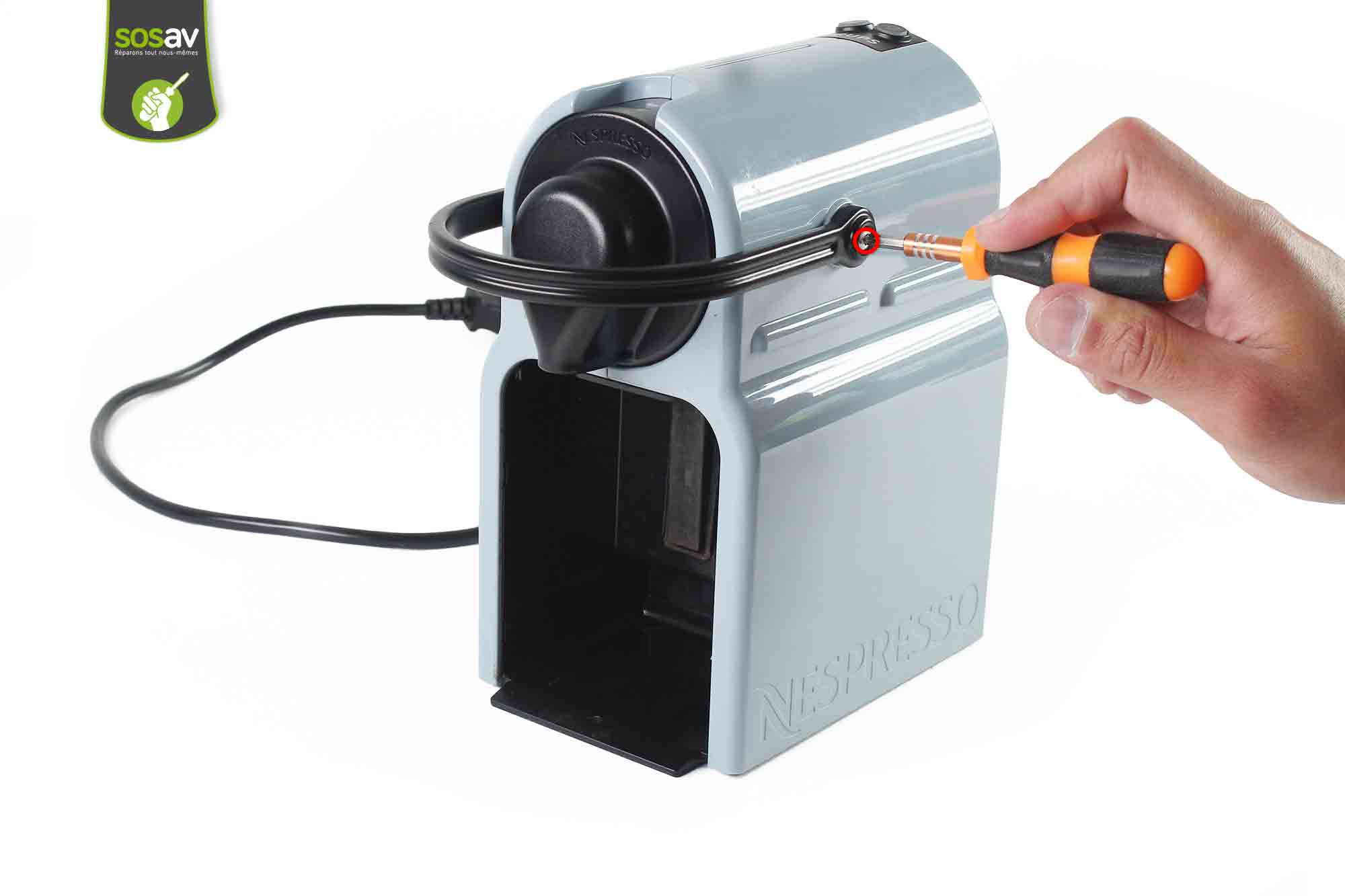 D'ailleurs, les experts de SOSav vous encourage dans cette démarche ! Comment ? On vous accompagnant dans votre réparation machine à café bien sûr ! Nos techniciens ont donc décortiqué cette cafetière Nespresso pour vous dévoiler ses entrailles dans ce guide de réparation qui vous explique comment changer ce câble d'alimentation qui vous pose problème. En une quinzaine de minutes, l'affaire sera réglée et vous pourrez de nouveau savourer votre café préféré.