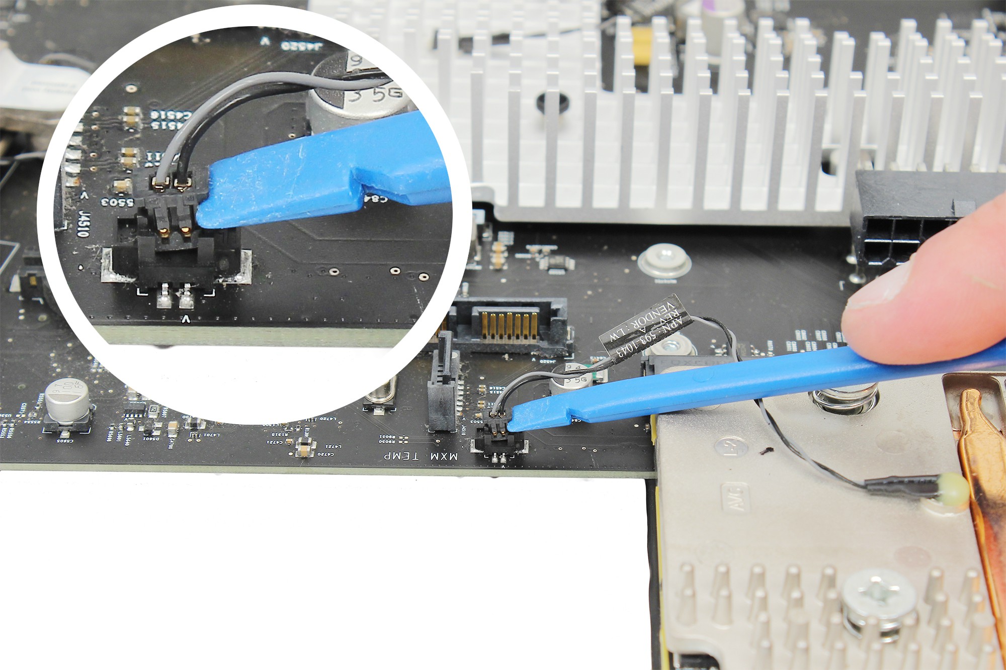 A l'aide d'une spatule en nylon, déconnectez le câble de la sonde de température de la carte graphique.