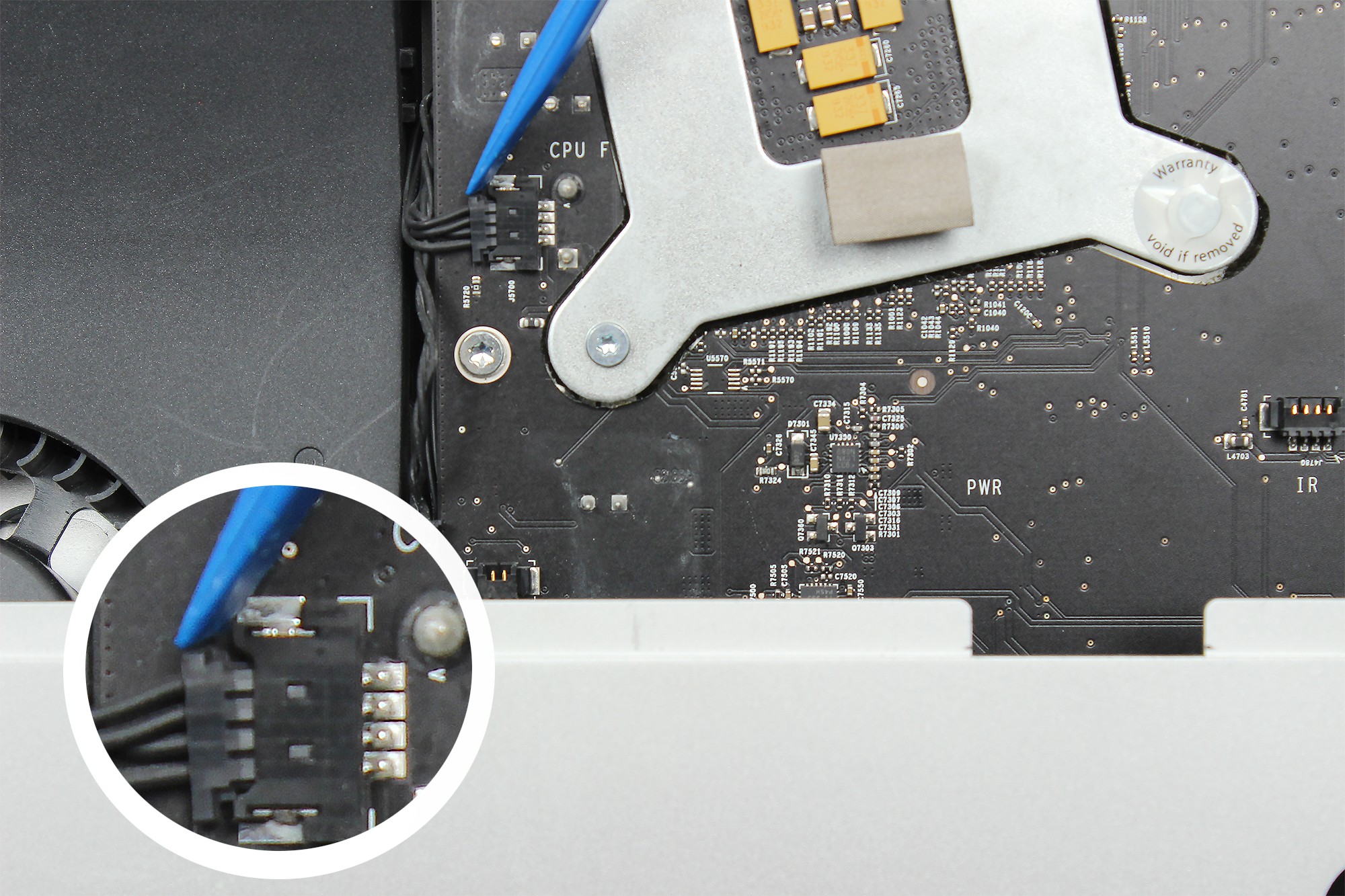 A l'aide d'une spatule en nylon, déconnectez le câble du ventilateur processeur.