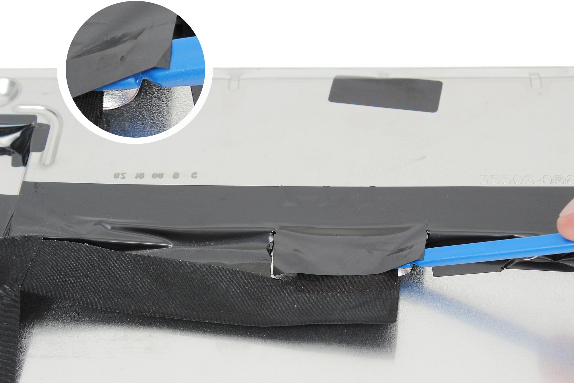 A l'aide d'une spatule en nylon, retirez l'adhésif noir situé sur le connecteur du câble de données de l'écran LCD.