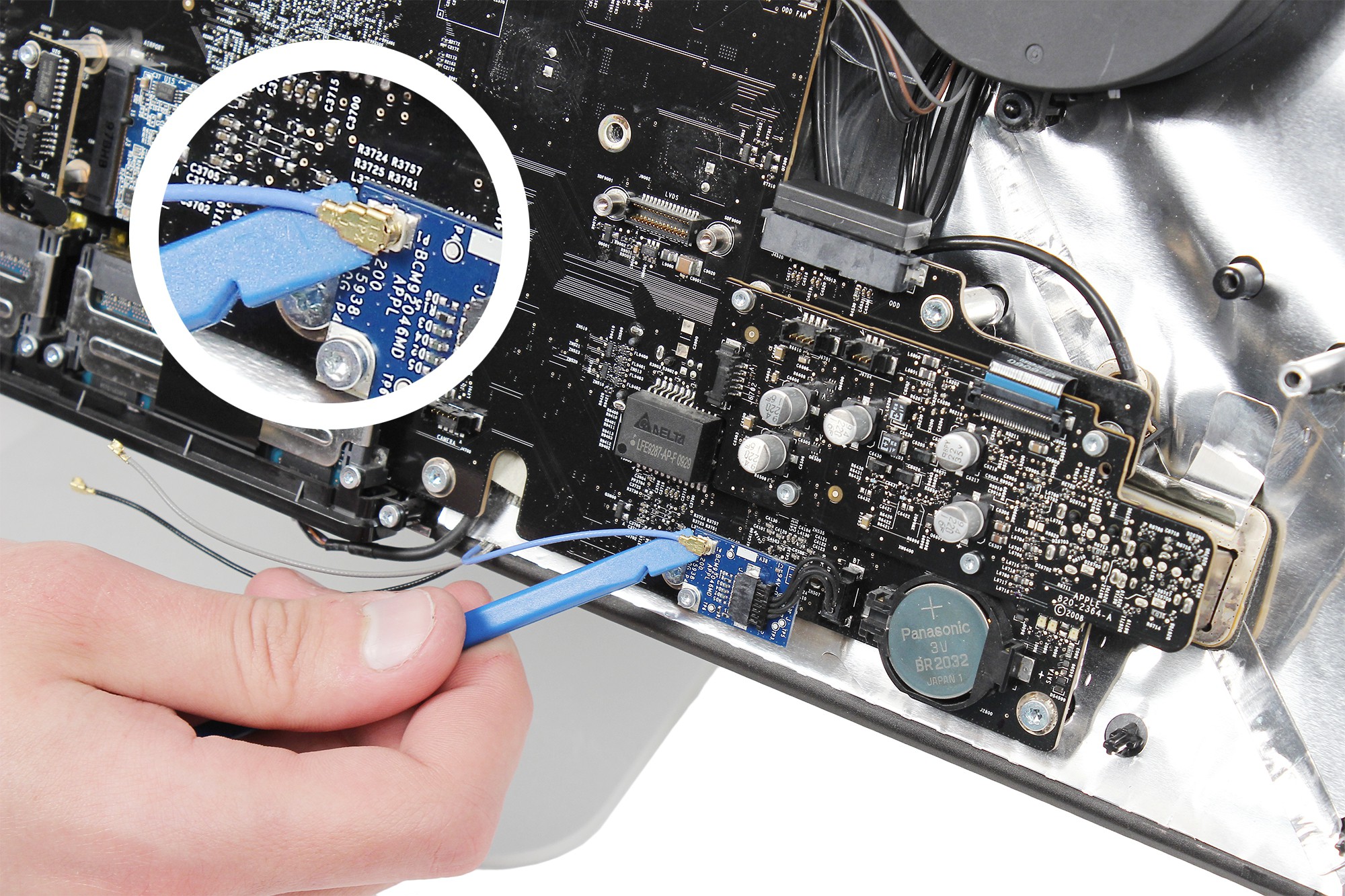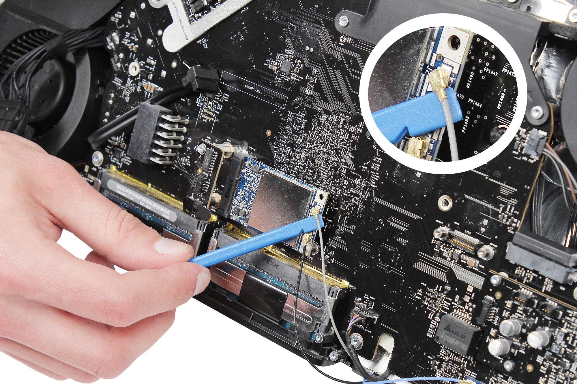 Déconnectez le câble d'antenne de la carte Bluetooth grâce à la spatule en nylon.