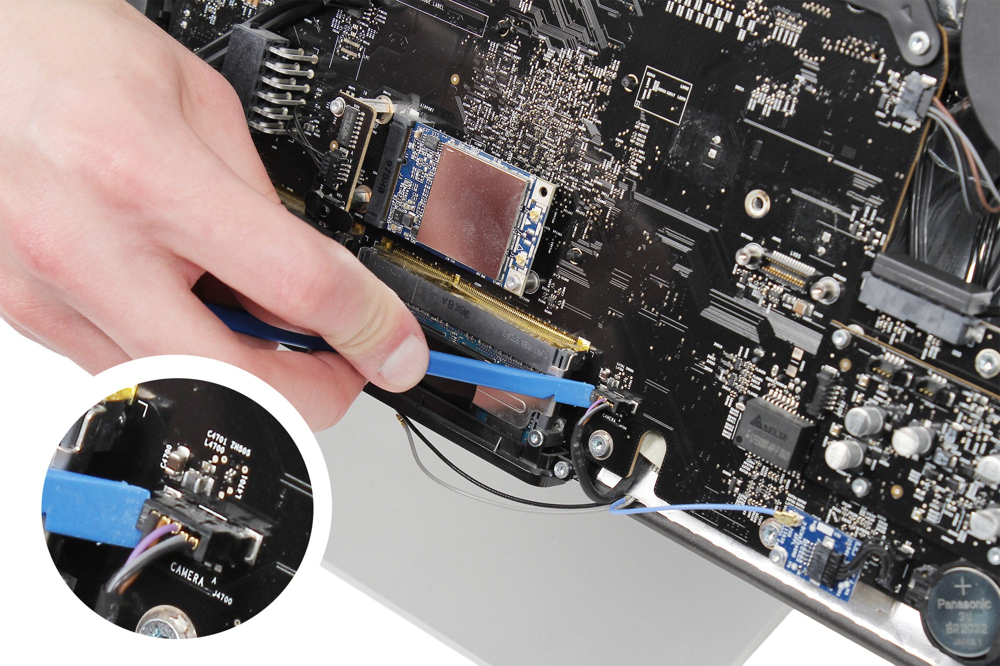 Utilisez une spatule en nylon afin de retirer le câble de la caméra.