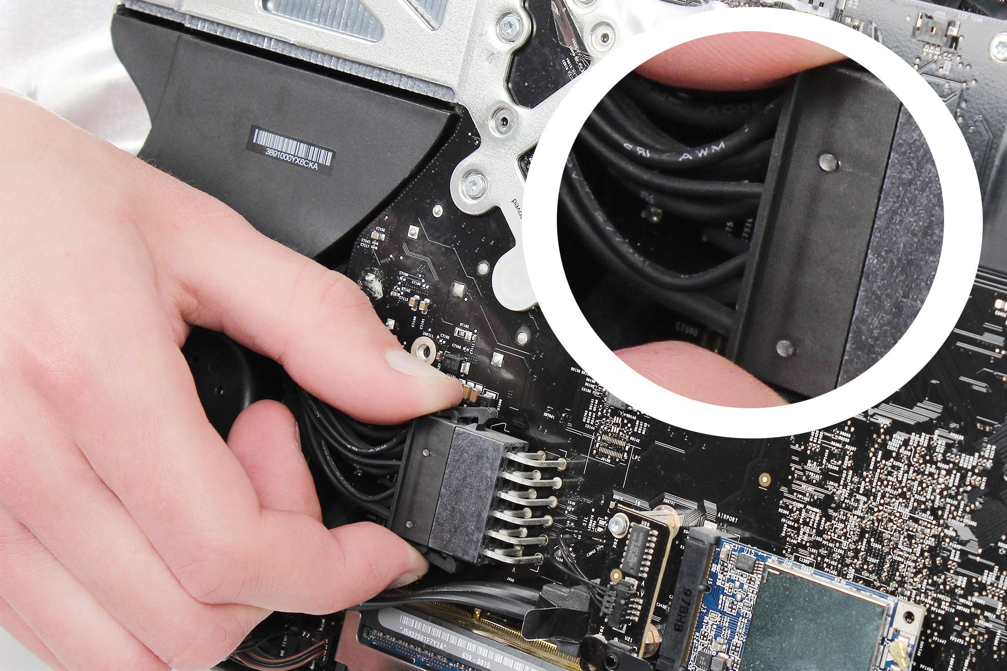 Retirez les deux vis Torx T6 maintenant le connecteur de données de l'écran LCD à la carte mère de l'iMac.