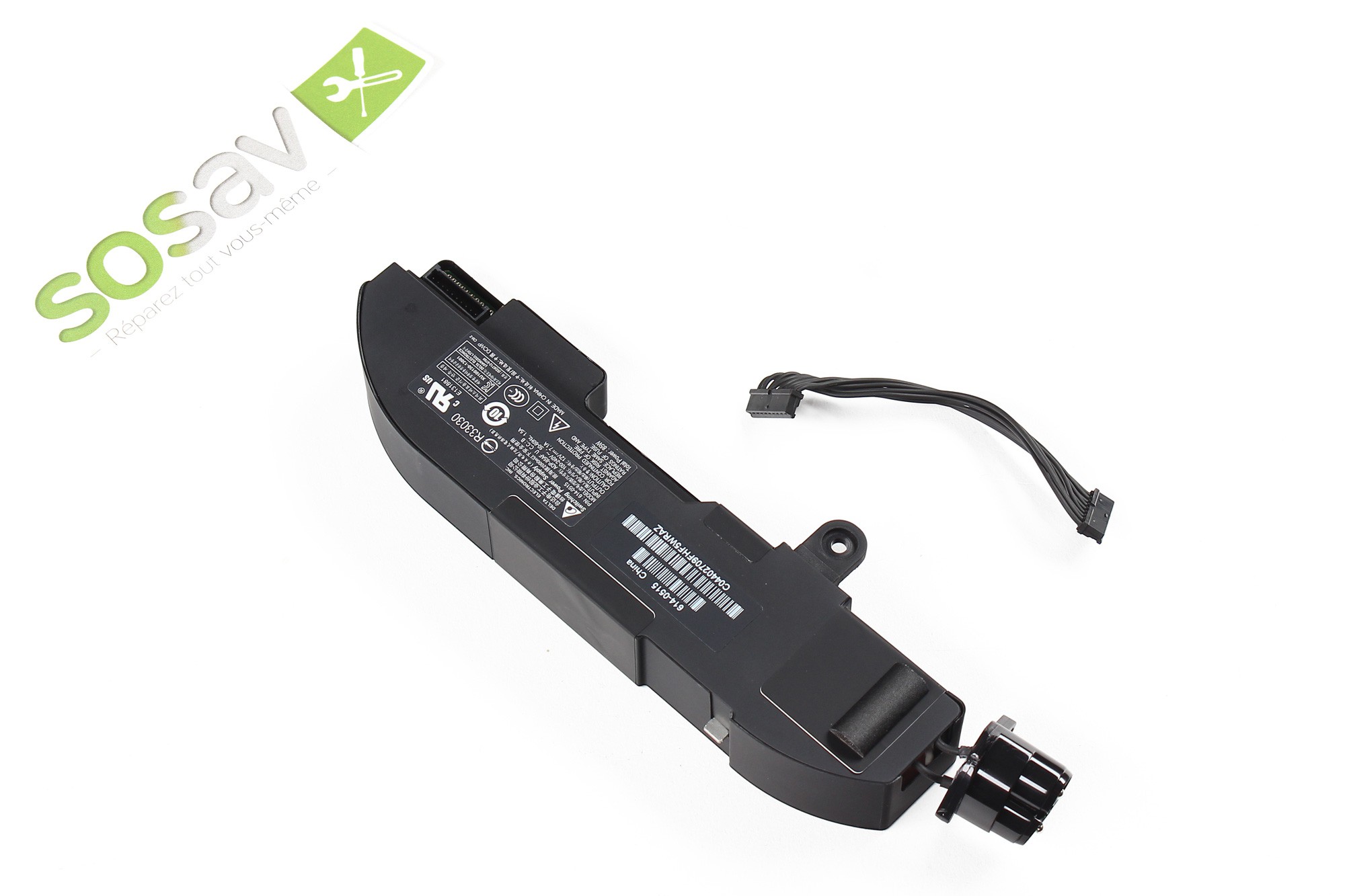 Conseil : Ne perdez pas cette petite pièce ! Elle vous sera nécessaire lors du remontage, ce taquet servant à maintenir la prise d'alimentation parfaitement droite.