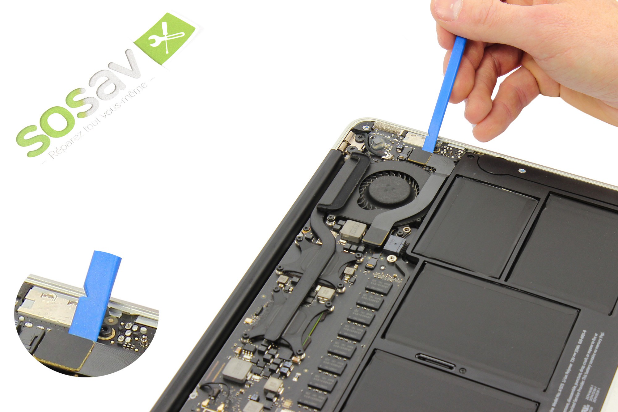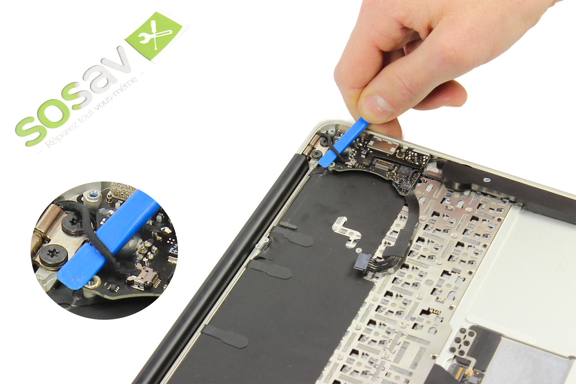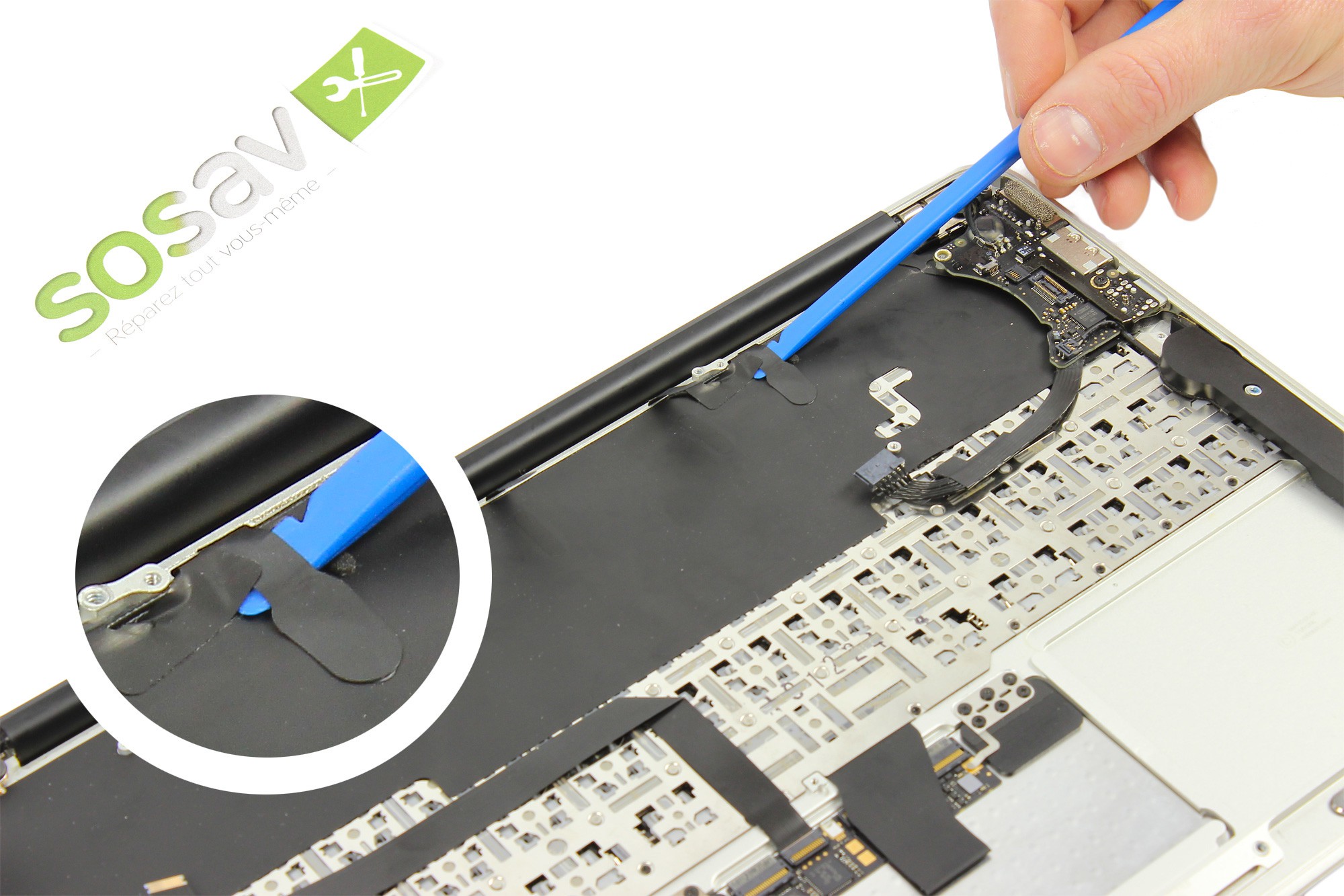 Puis utilisez une spatule en nylon pour finir de soulever les 2 antennes sur toute la longueur de la coque du macbook.