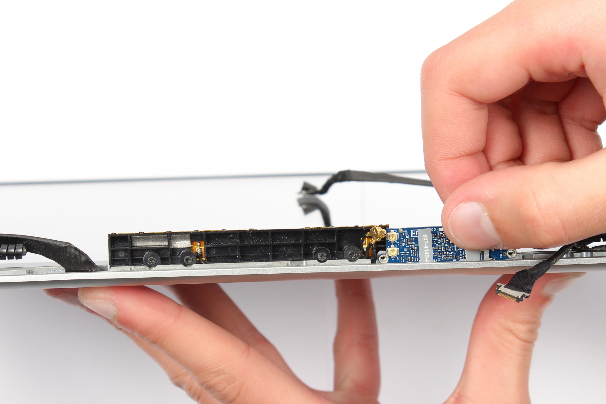 Tirez ensuite légèrement sur la nappe de l'écran LCD (Nappe LVDS) afin de la retirer du connecteur.