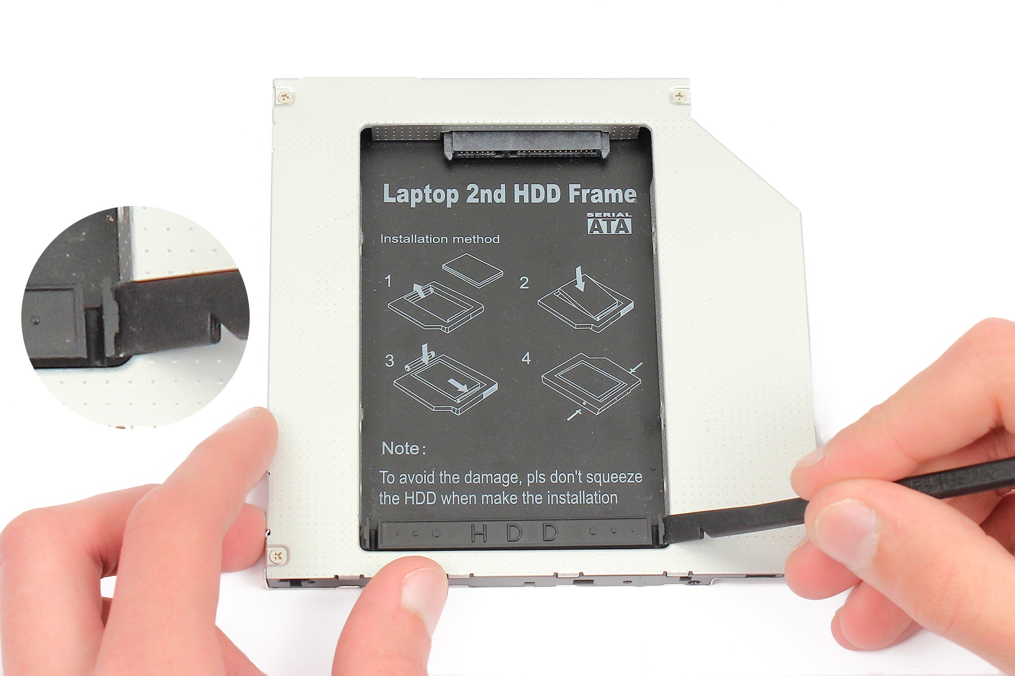 Remettez ensuite l'élement plastique permettant de bloquer le disque dur dans son logement.