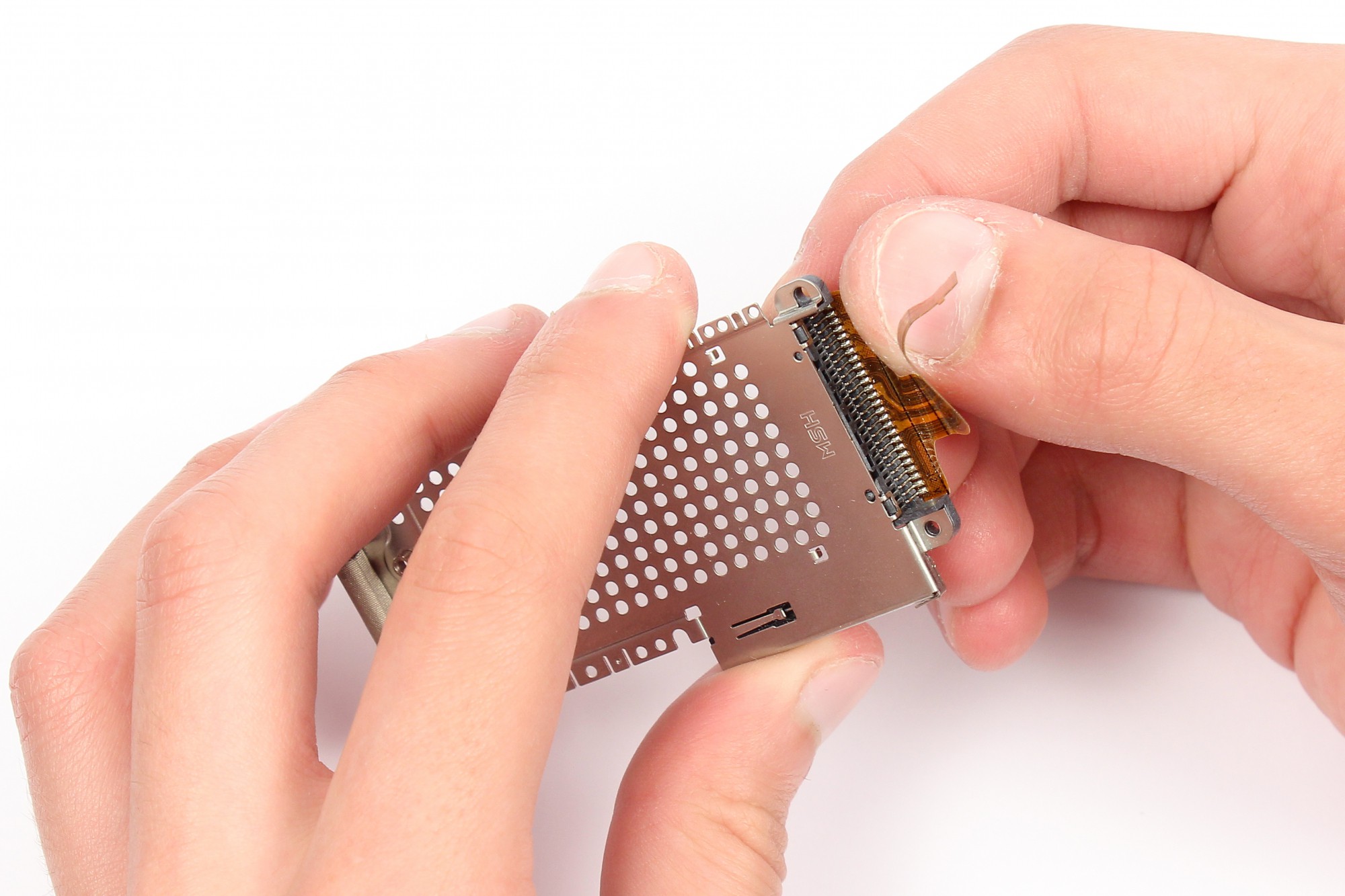 Procédez ensuite très délicatement à la déconnexion de la nappe puis à son retrait.