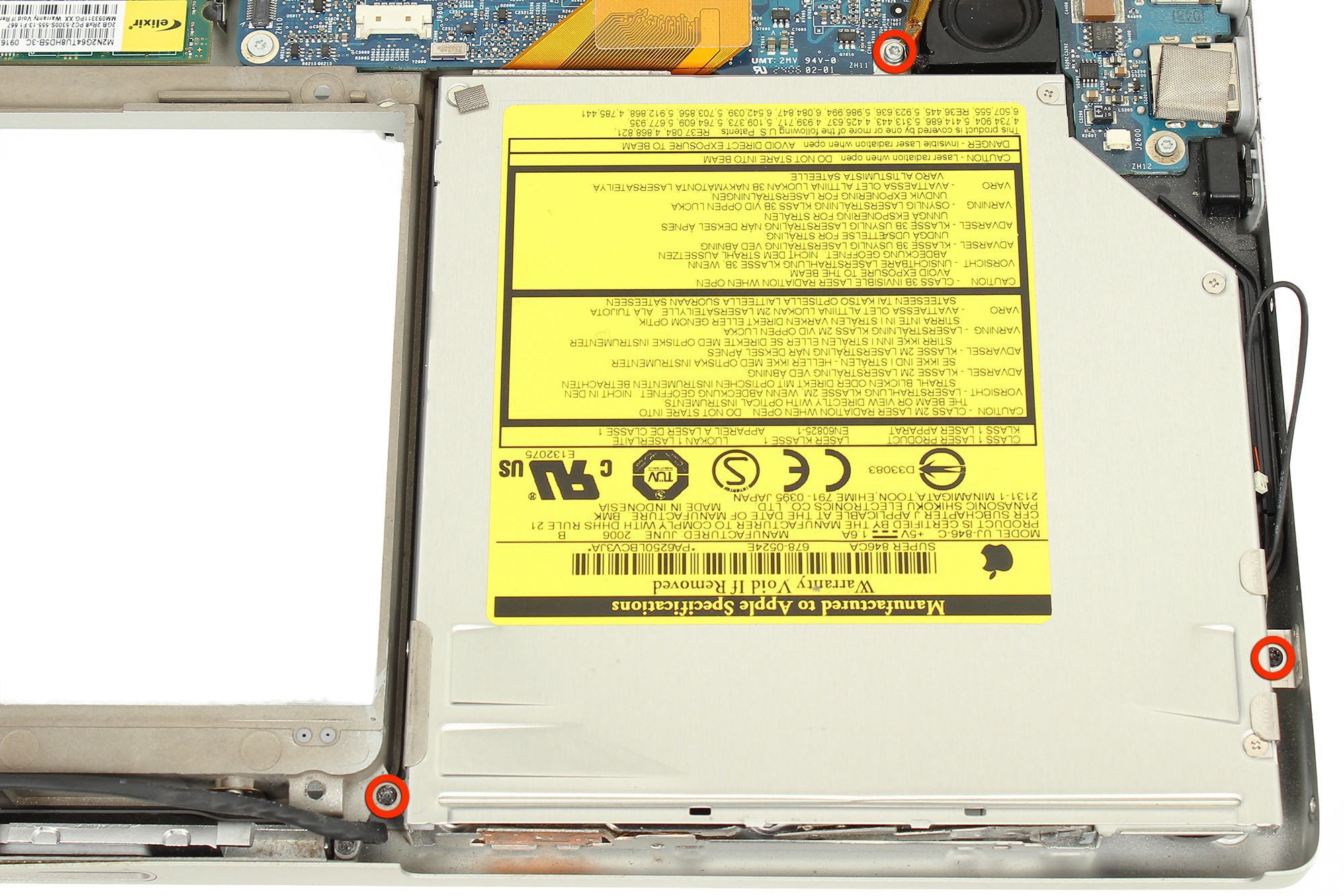 Le lecteur optique (SuperDrive) est désormais démonté.