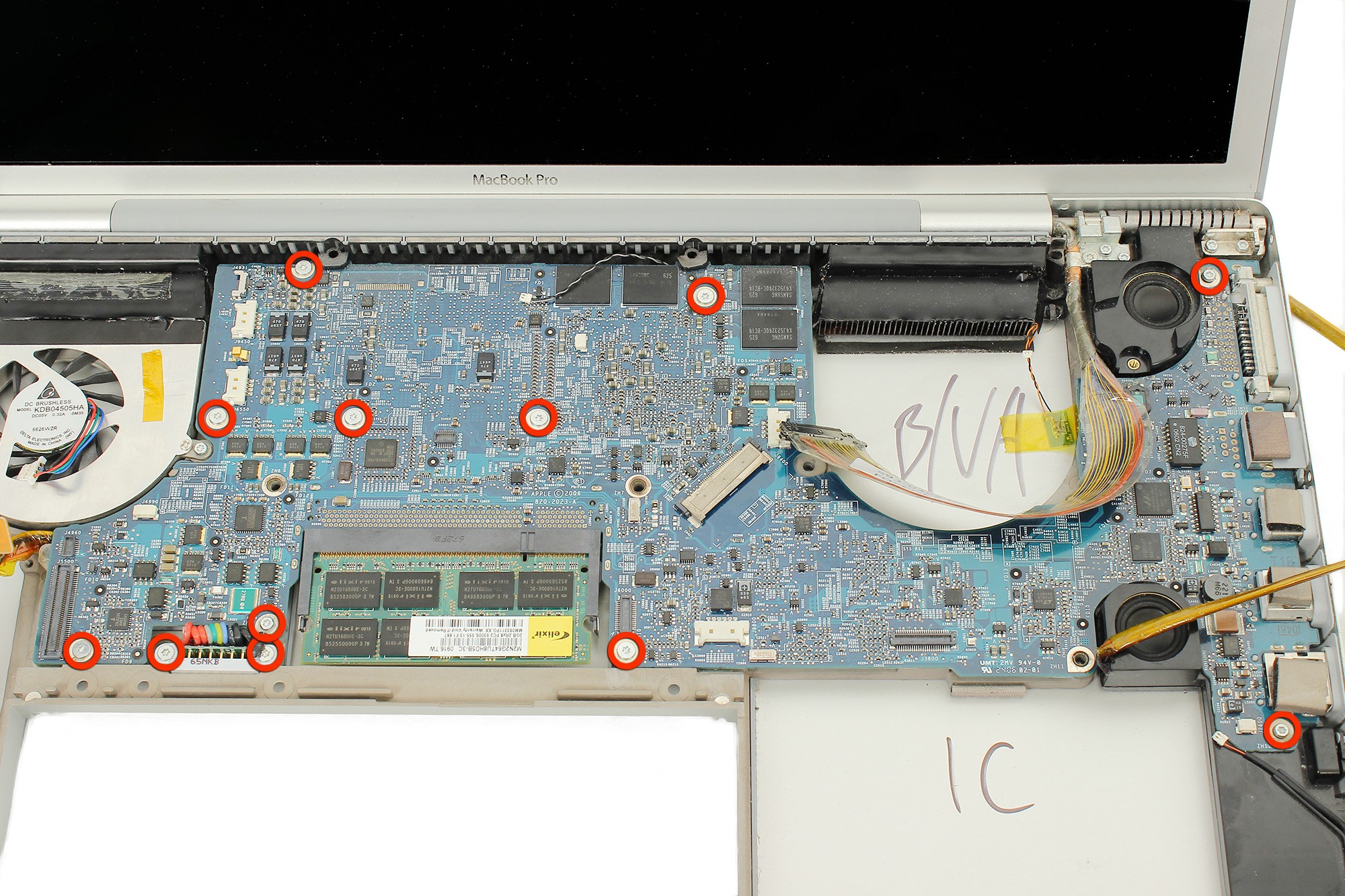 Dévissez ensuite les 12 vis Torx maintenant la carte mère au châssis du MacBook Pro 17".