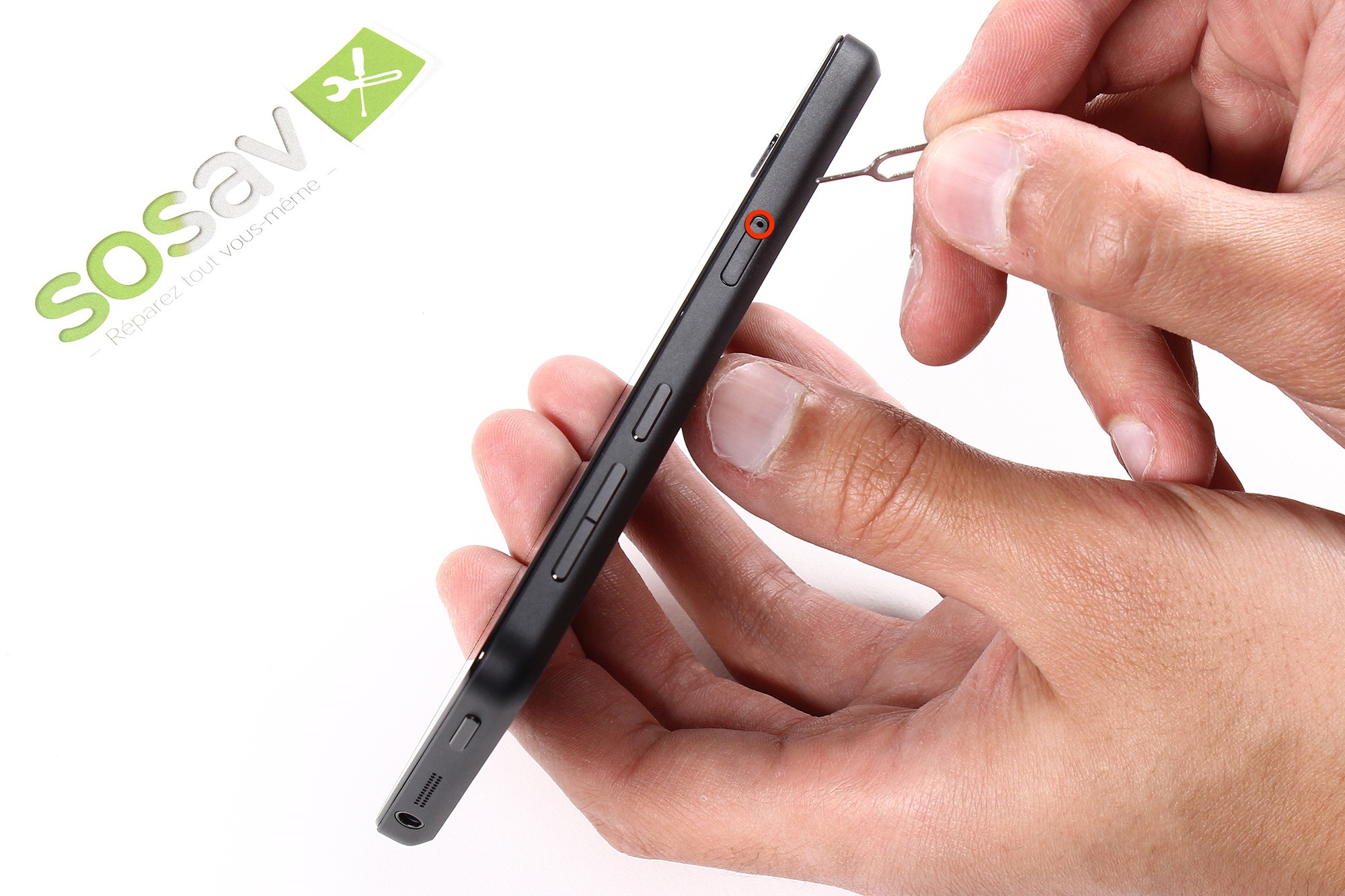 Insérez l'extracteur de carte SIM afin de libérer le tiroir supportant la carte SIM.