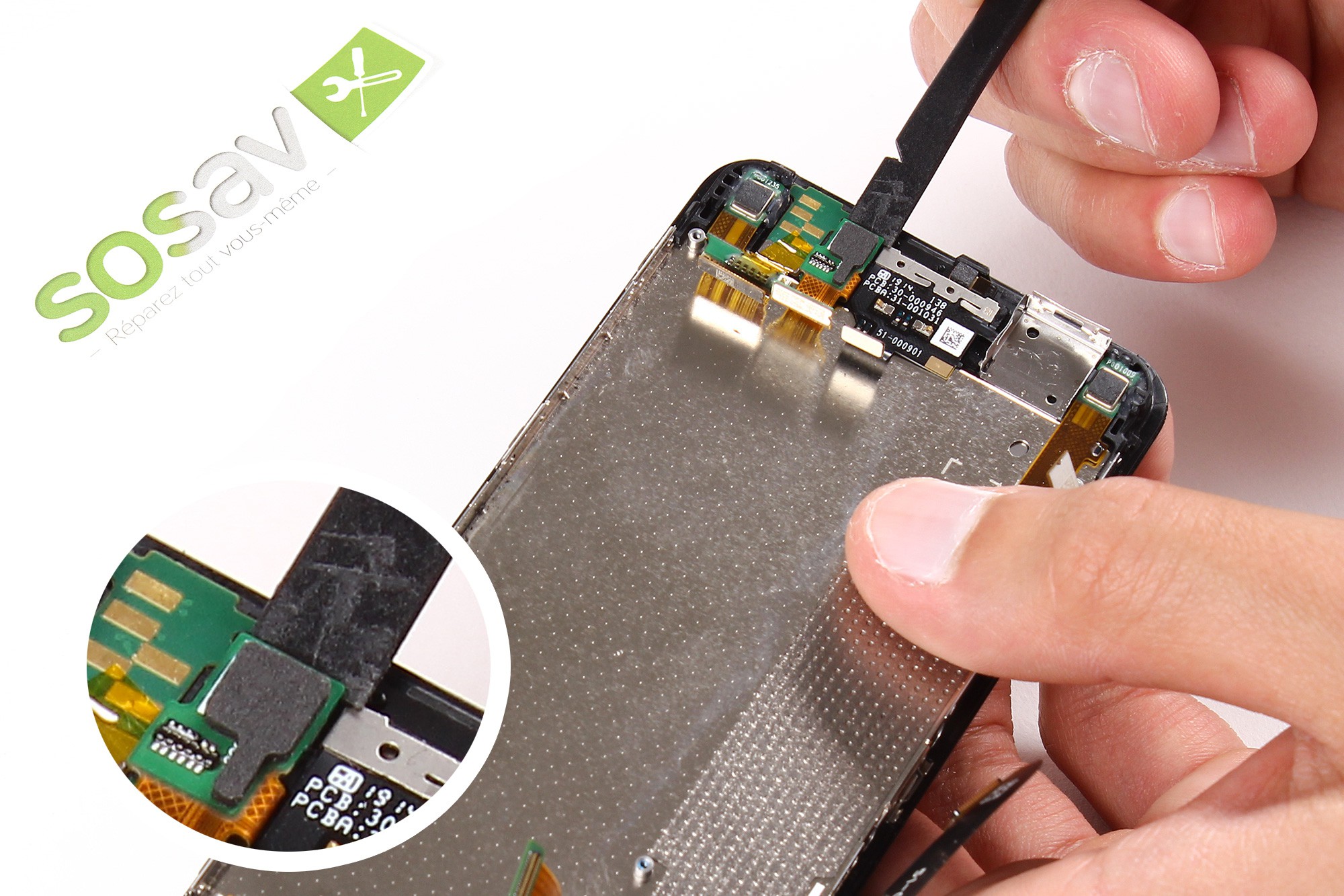 Déconnectez la nappe de l'écran LCD via la spatule en nylon.