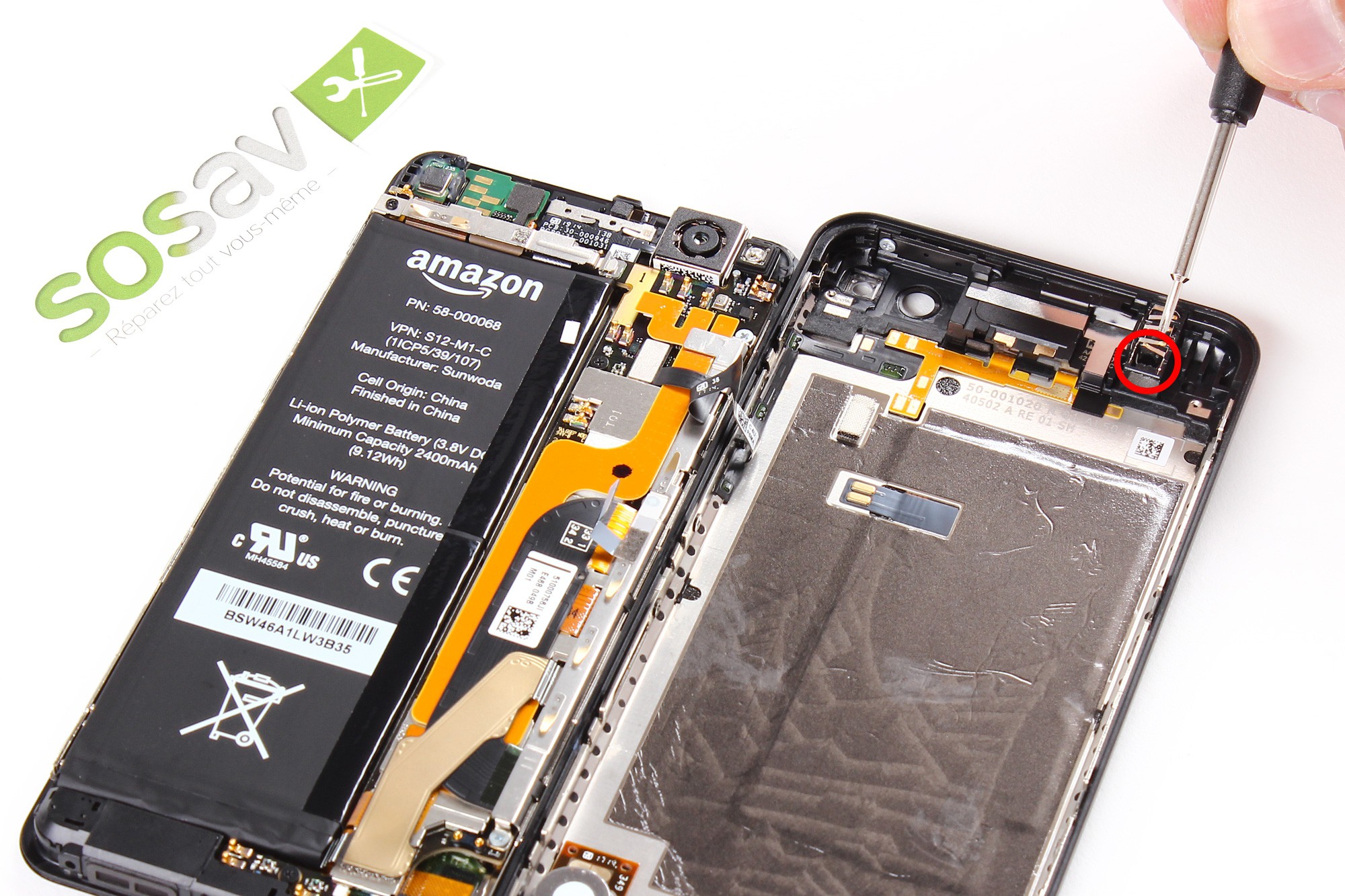 La prise jack de l'Amazon FirePhone est désormais démontée.