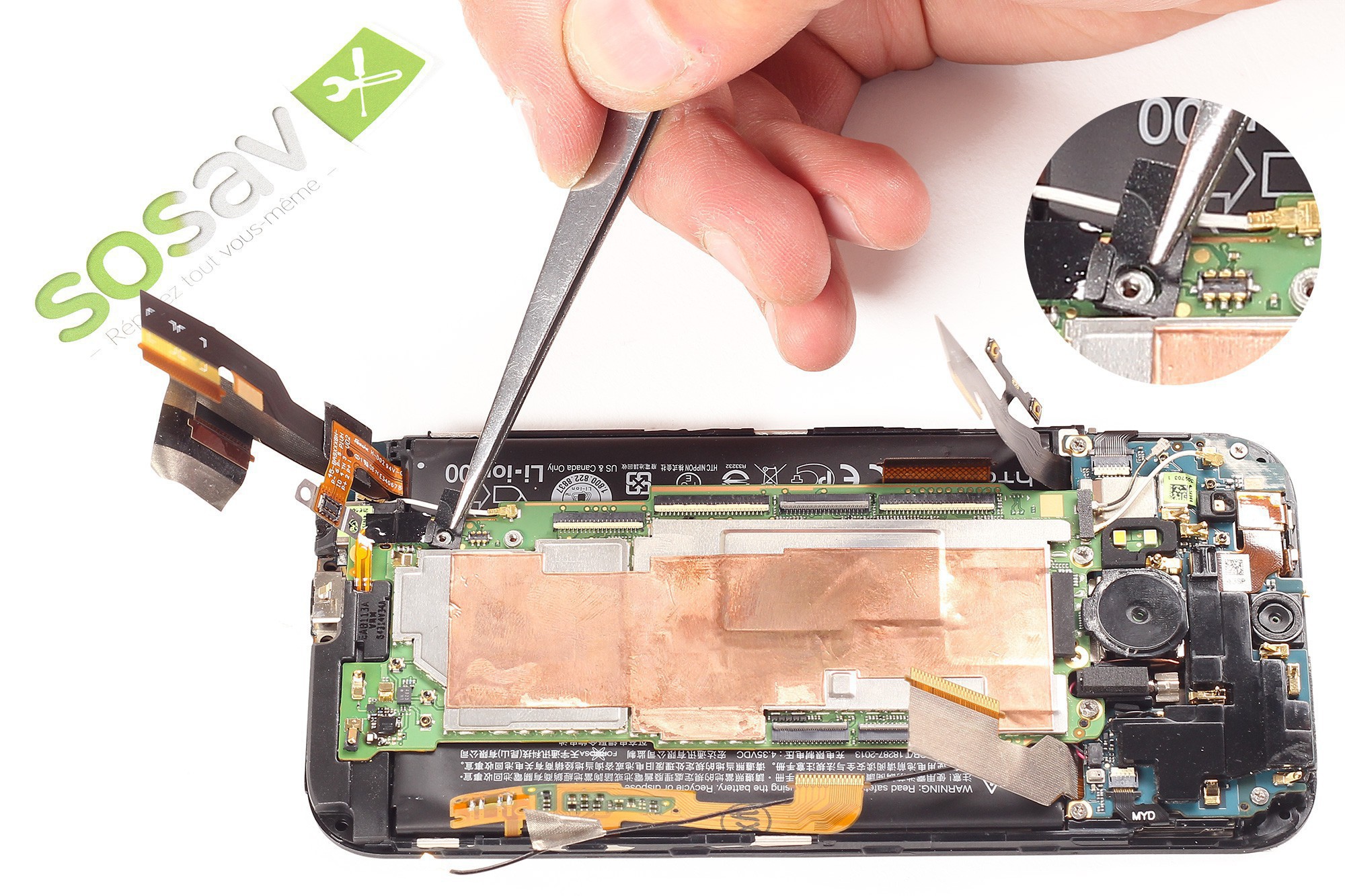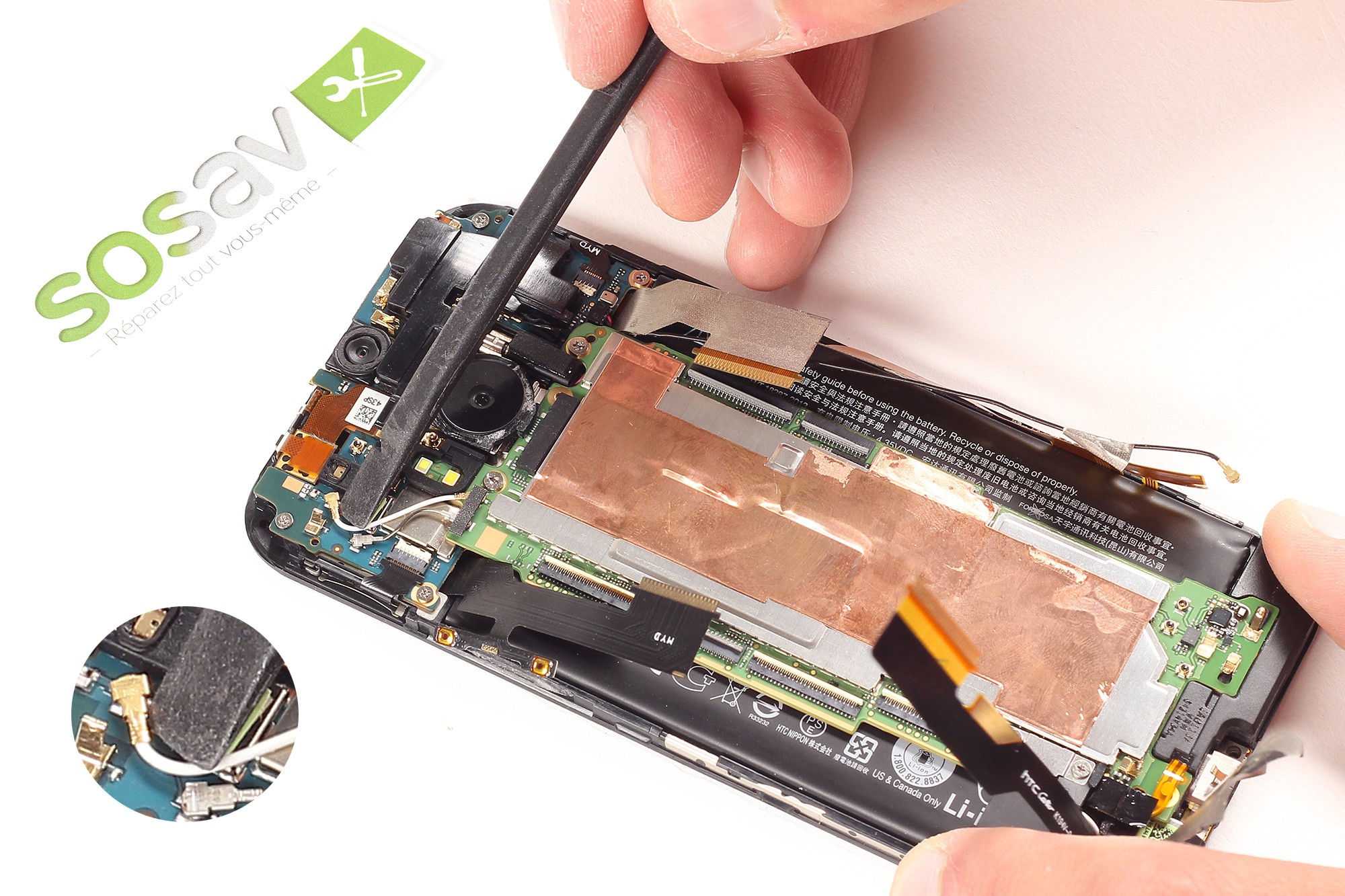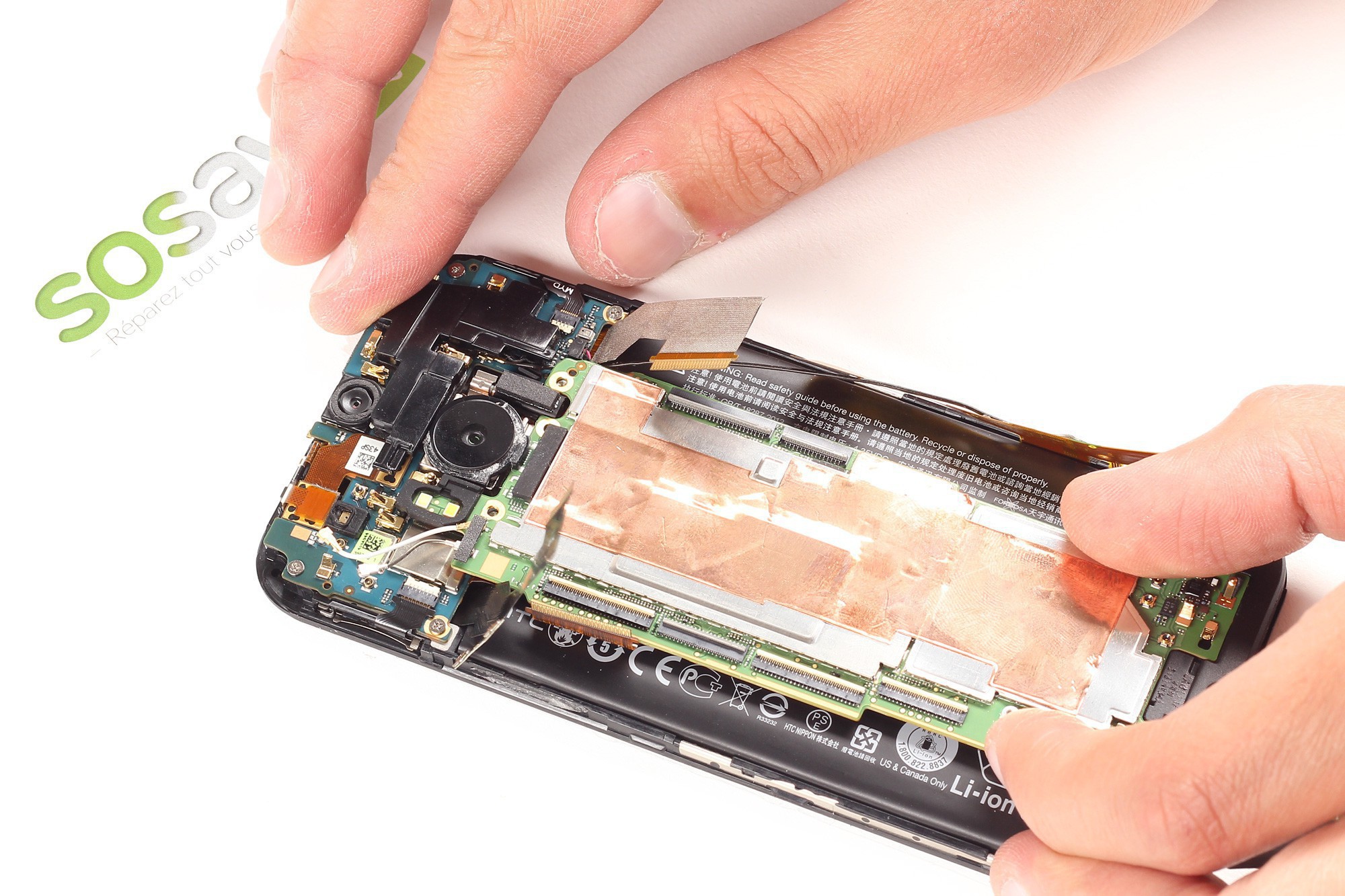 Soulevez délicatement la carte fille puis procédez à son retrait du téléphone.La carte fille du HTC one M8 est désormais démontée.