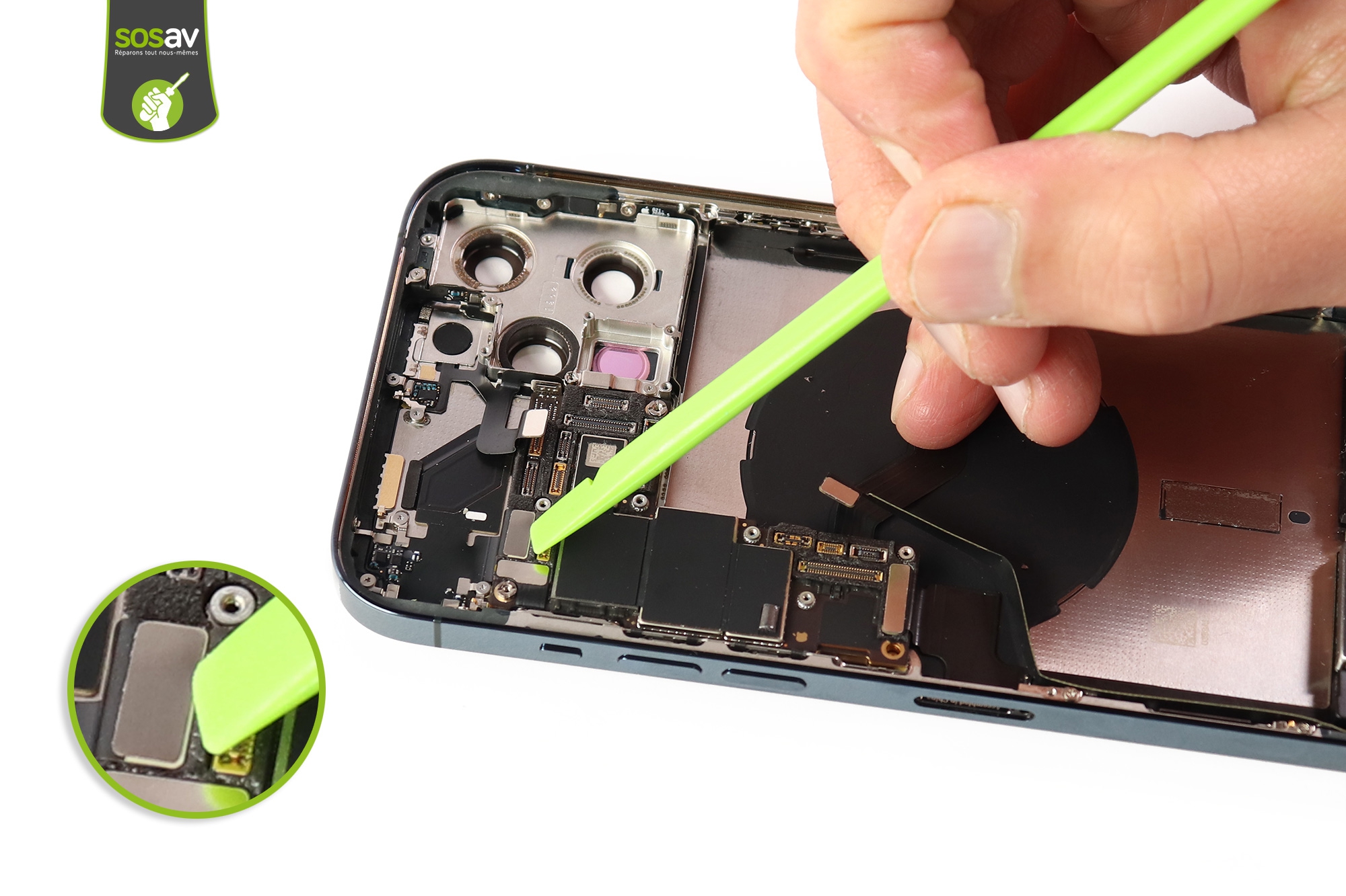 Votre carte mère iPhone 12 Pro Max ne fonctionne plus ? Après avoir changé tous les composants qui auraient pu résoudre vos soucis, votre iPhone ne s'allume toujours pas ? L'iPhone est tombé dans l'eau et vous souhaitez le désoxyder ? Vous désirez installer une carte mère reconditionnée ou faire de la micro-soudure pour la sauver ? Les experts SOSav vous expliquent comment la changer dans ce guide de réparation illustré et commenté.