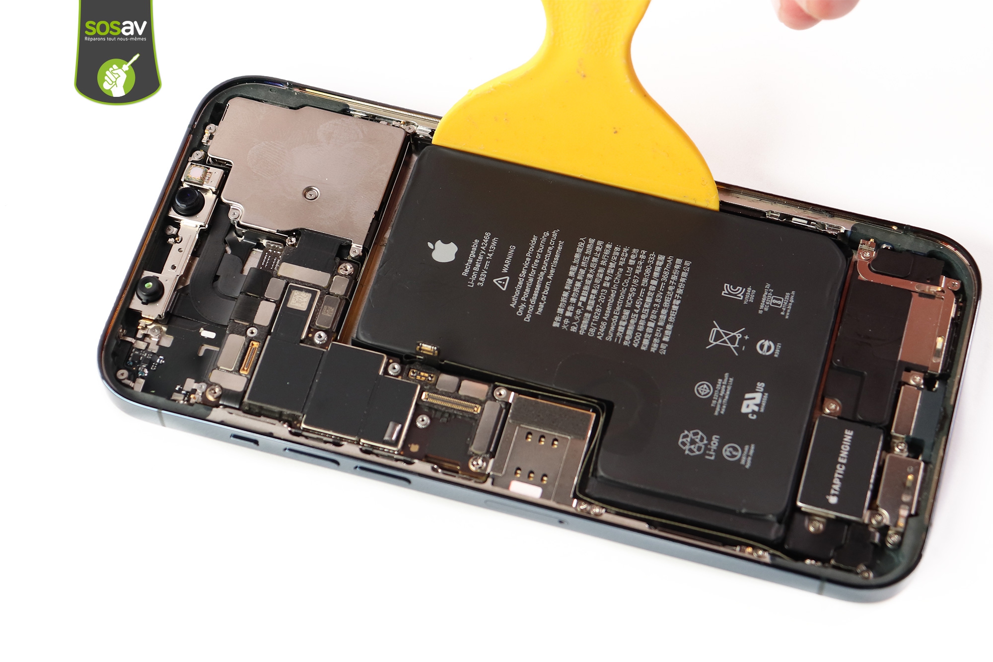 La batterie iPhone 12 Pro Max est extraite.