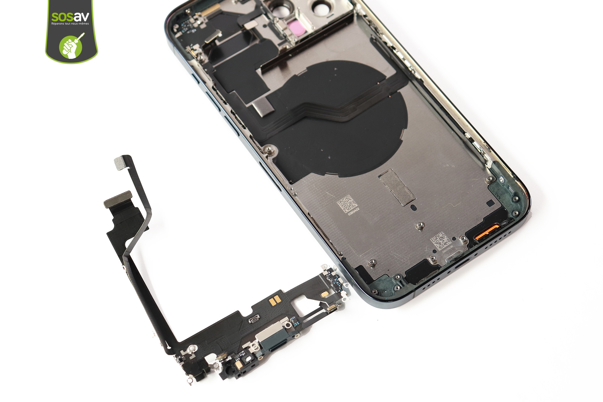 Terminez par décoller en douceur la nappe du connecteur de charge afin de l'extraire du châssis.