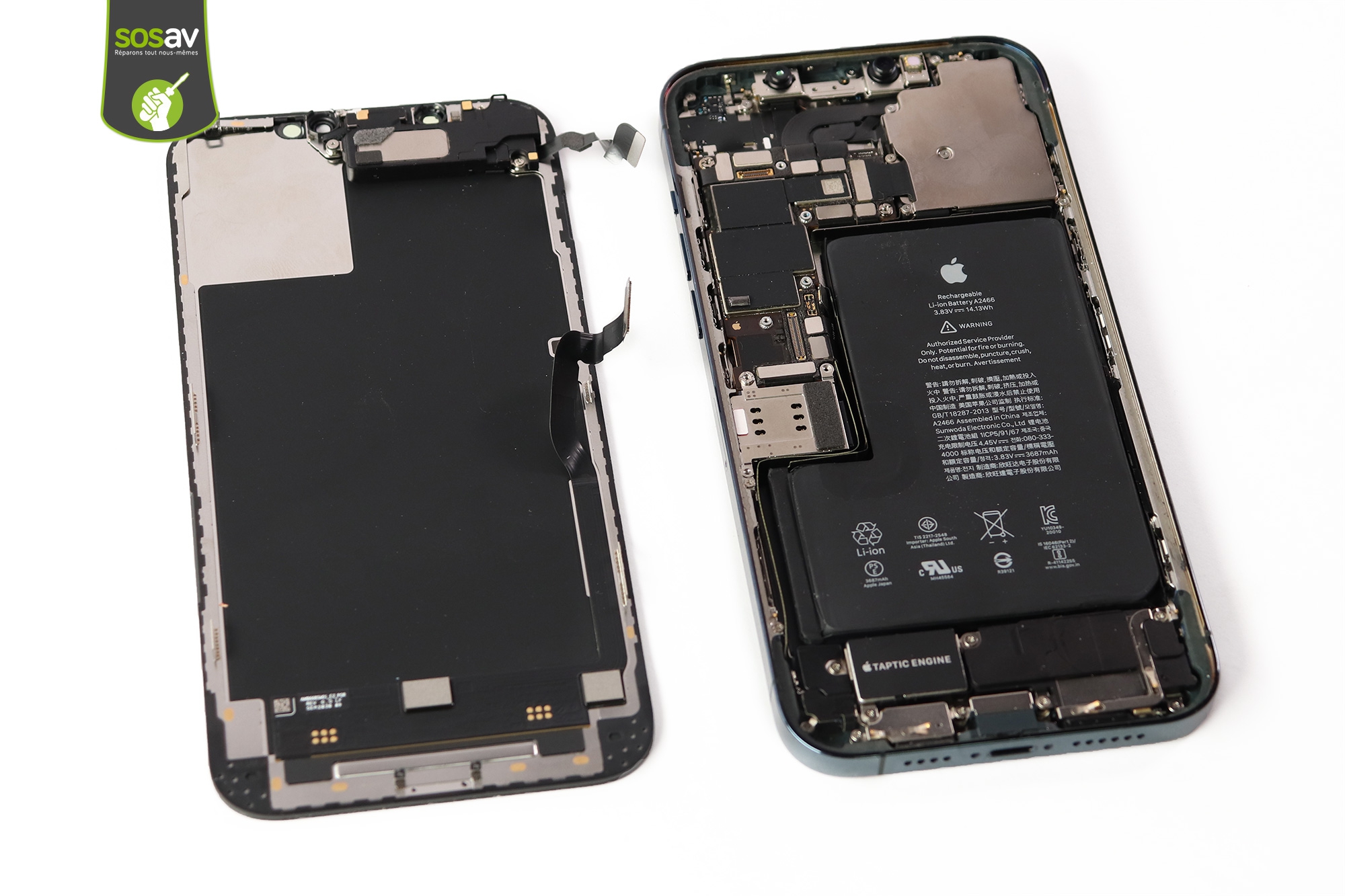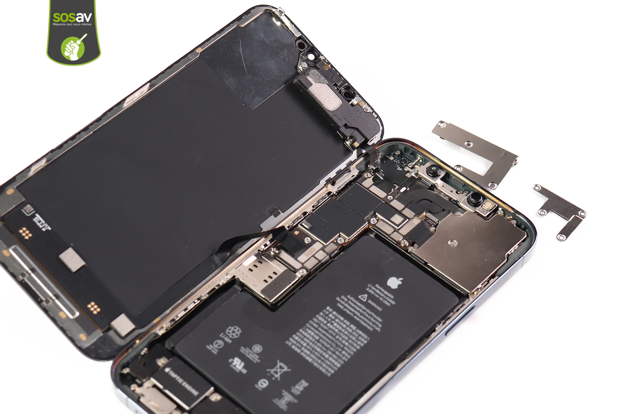 Chez SOSav, nous savons bien que l'écran iPhone est indispensable au bon usage du téléphone. Et pourtant, c'est l'élément le plus fragile car le plus exposé au risque, aux chutes et aux chocs. Mais comment faire quand un accident survient ? Vous avez la possibilité de le réparer et de retrouver un téléphone comme neuf. De même si vous n'entendez plus vos interlocuteurs lors des appels car votre haut-parleur interne iPhone 12 Pro Max est branché sur cet écran iPhone.