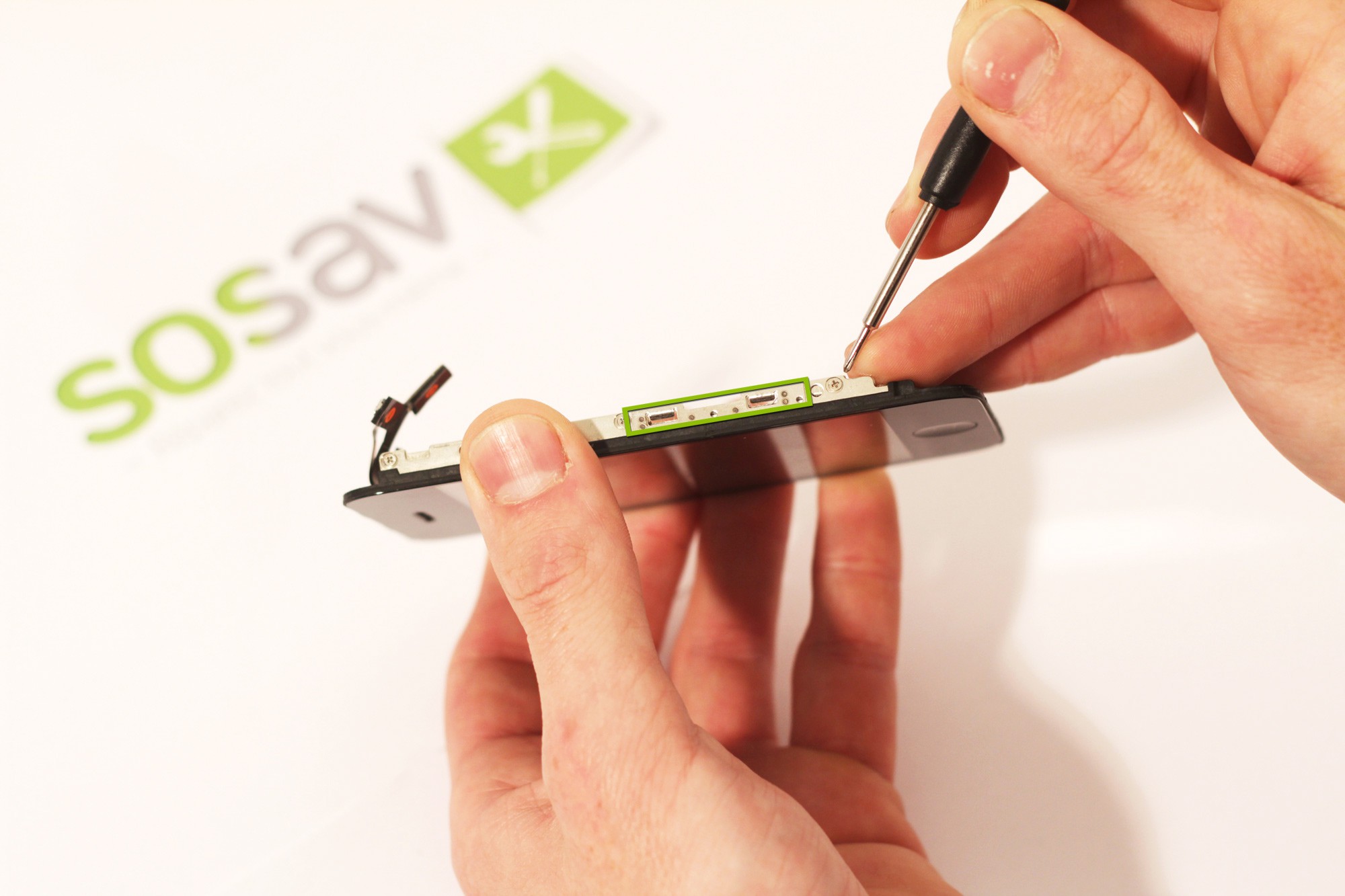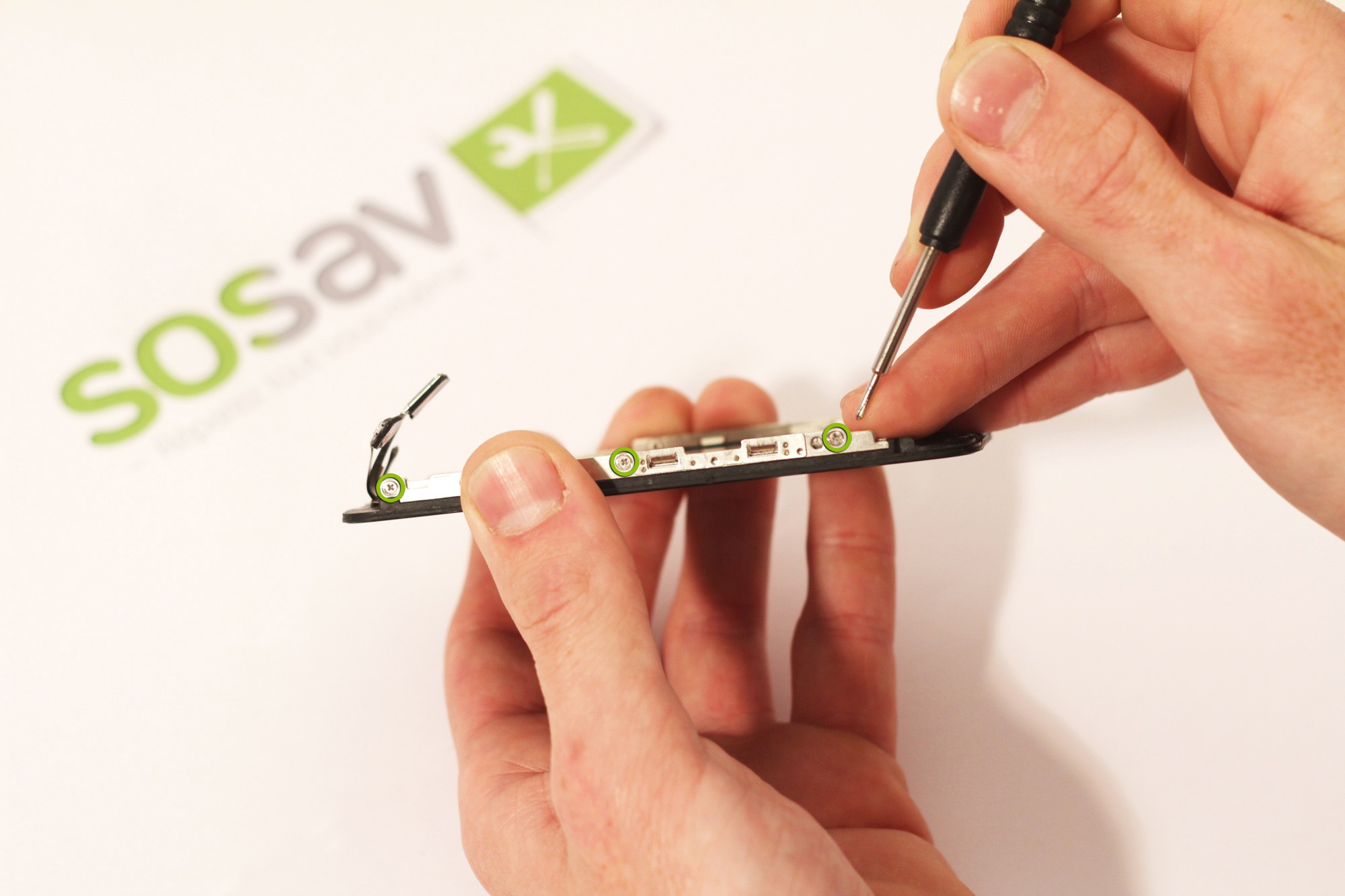 Dévissez les deux vis cruciforme situées de chaque côtés du connecteur dock de l'iPhone