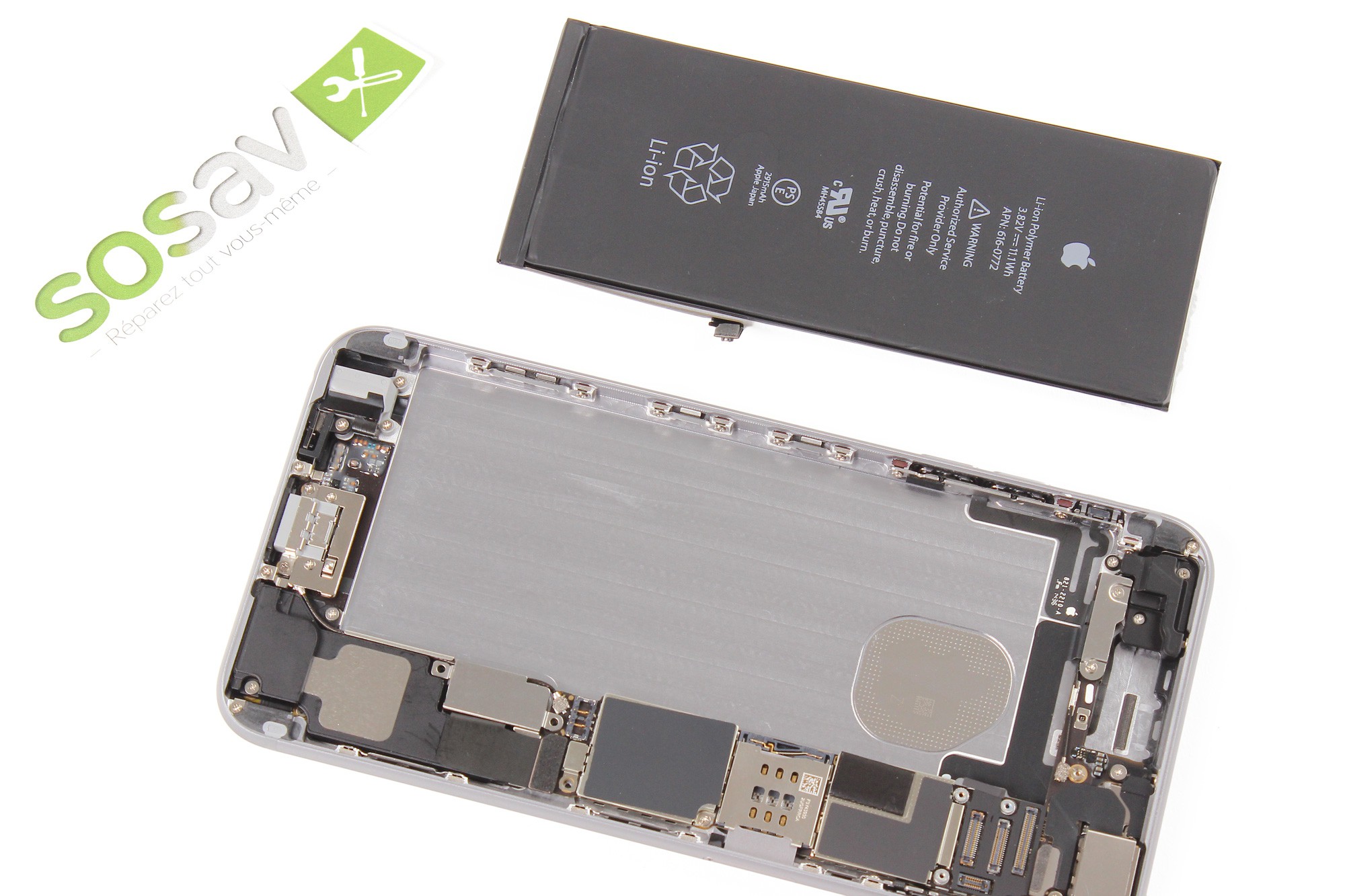 La batterie de l'iPhone 6 Plus est désormais démontée.