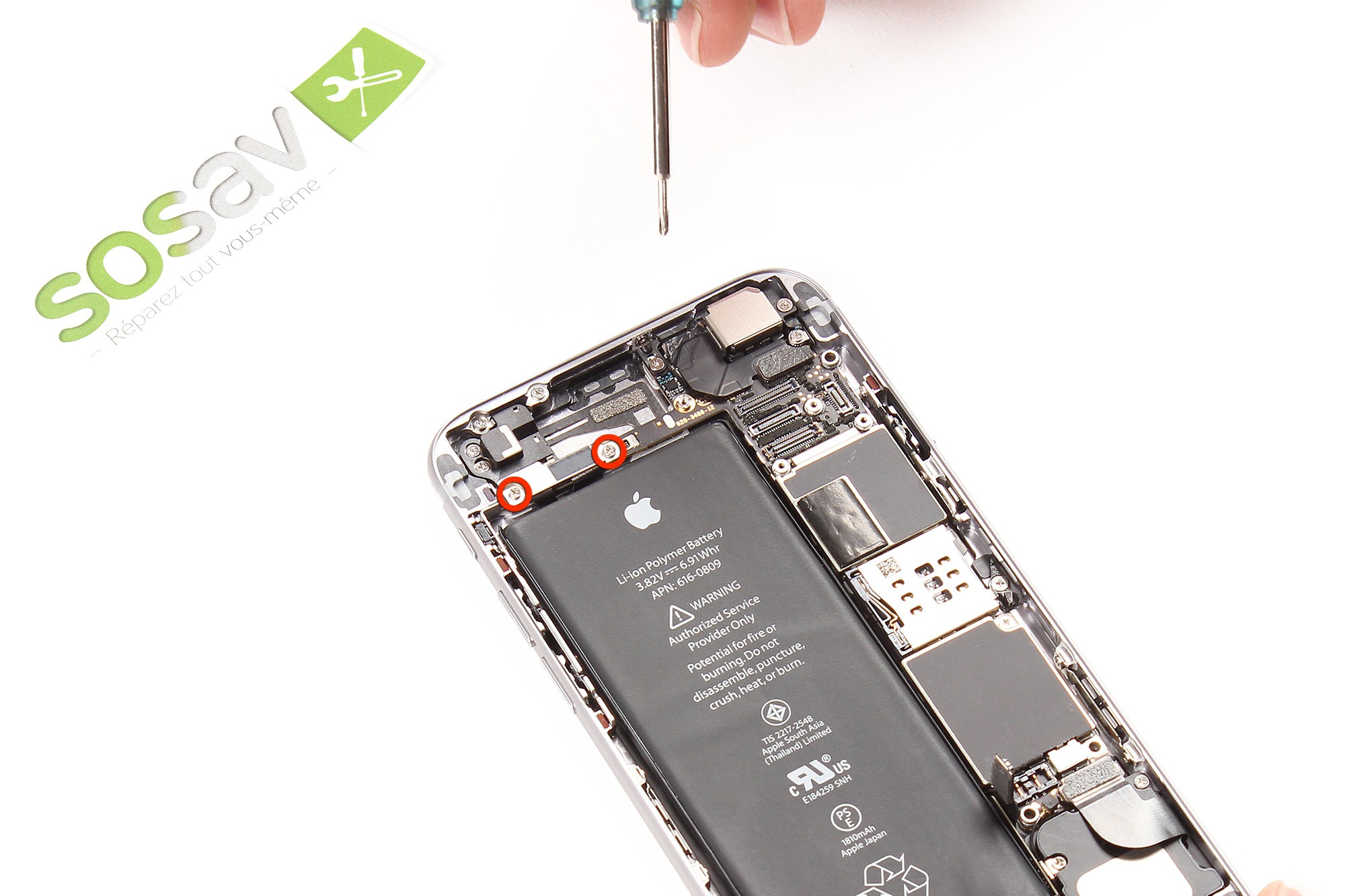 Ces vis sont localisées au niveau du connecteur lightning du téléphone.