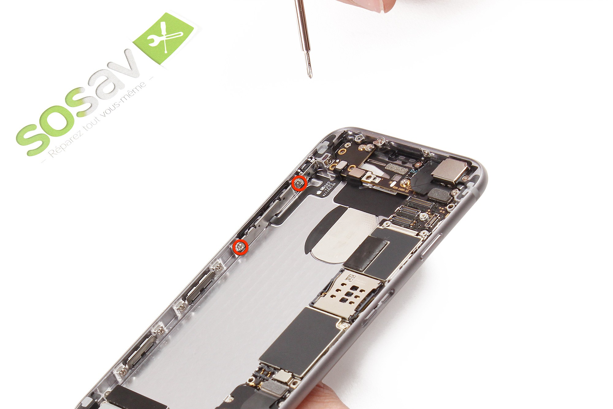 Ces vis sont localisées au niveau du connecteur lightning du téléphone.