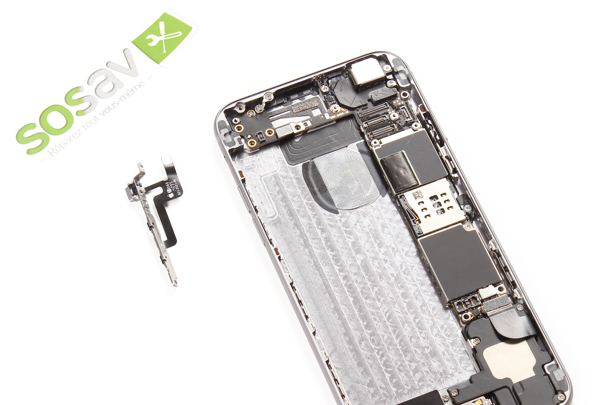La nappe des boutons de volume et vibreur est désormais démontée.